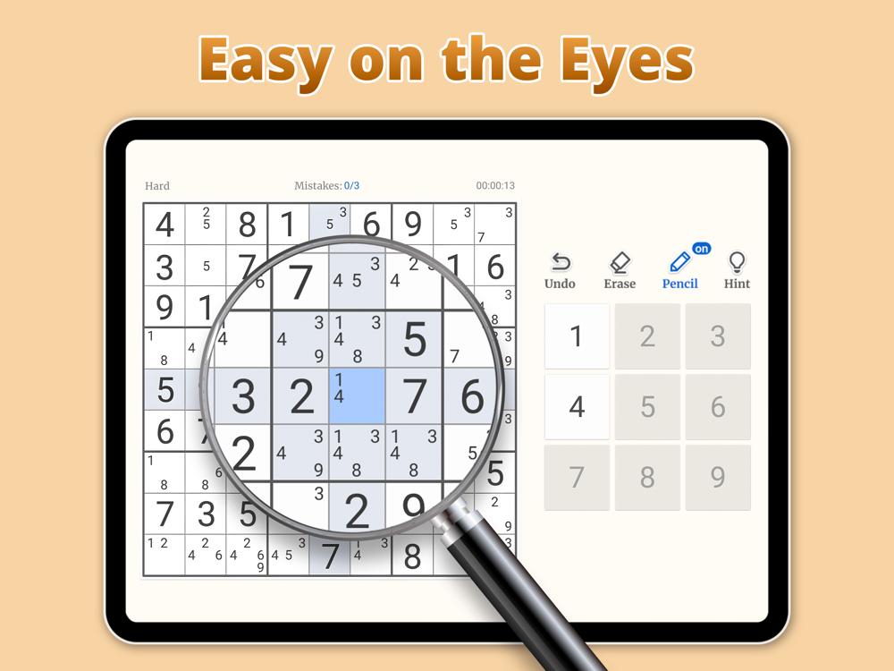 • Pencil Mode: Simulate solving puzzles with a pencil on paper.