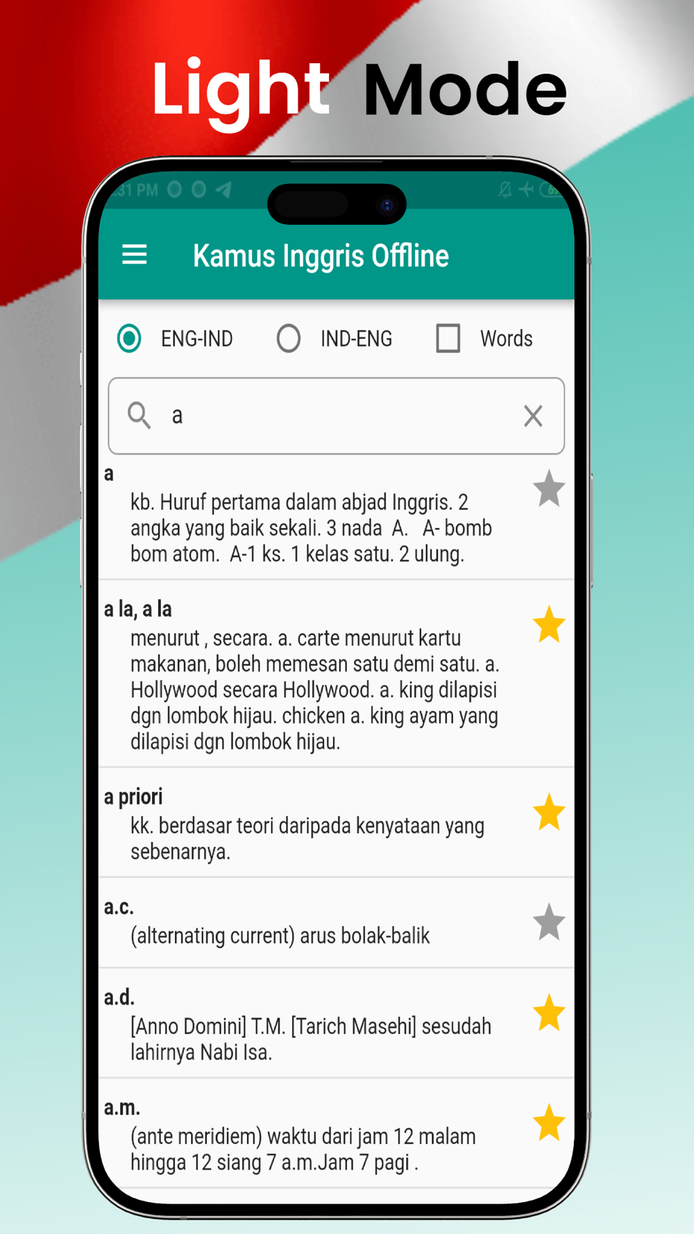 Kamus bahasa Inggris - Indonesia dan Indonesia - Inggris 100% offline atau bisa digunakan tanpa menggunakan koneksi internet, mudah digunakan dan dilengkapi dengan beberapa fitur yaitu: