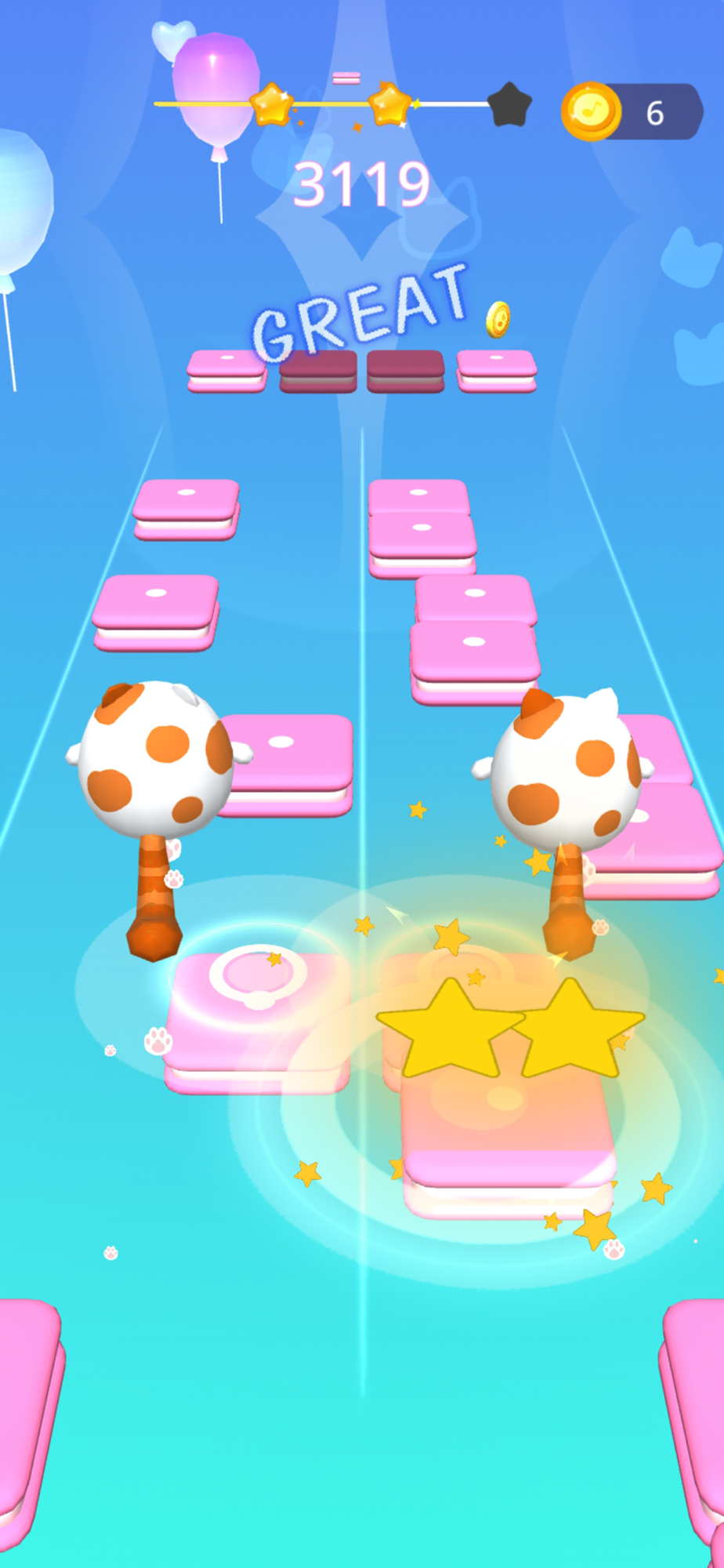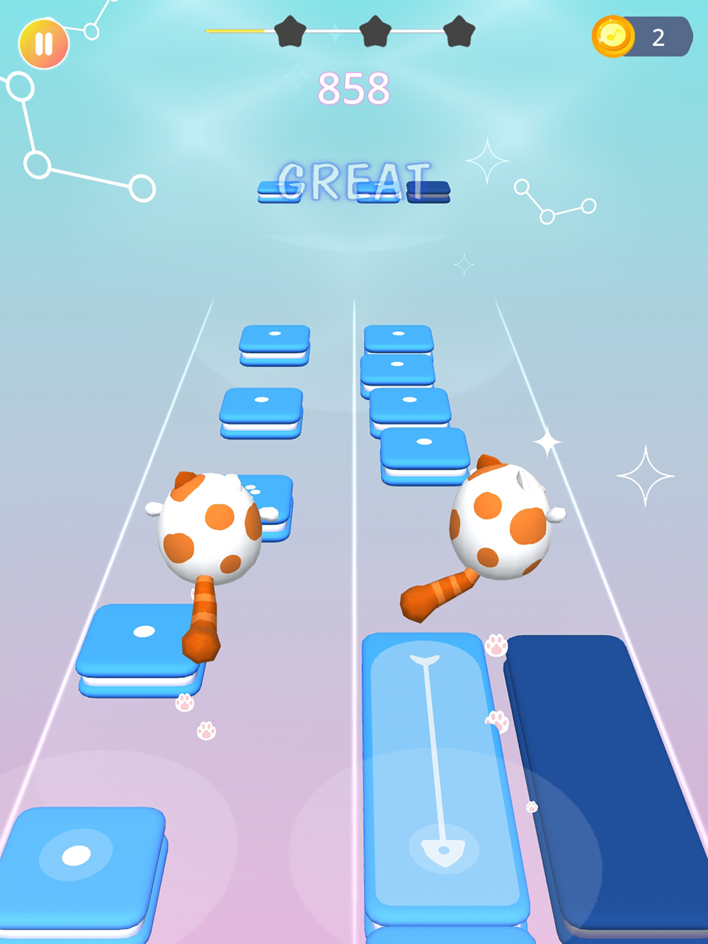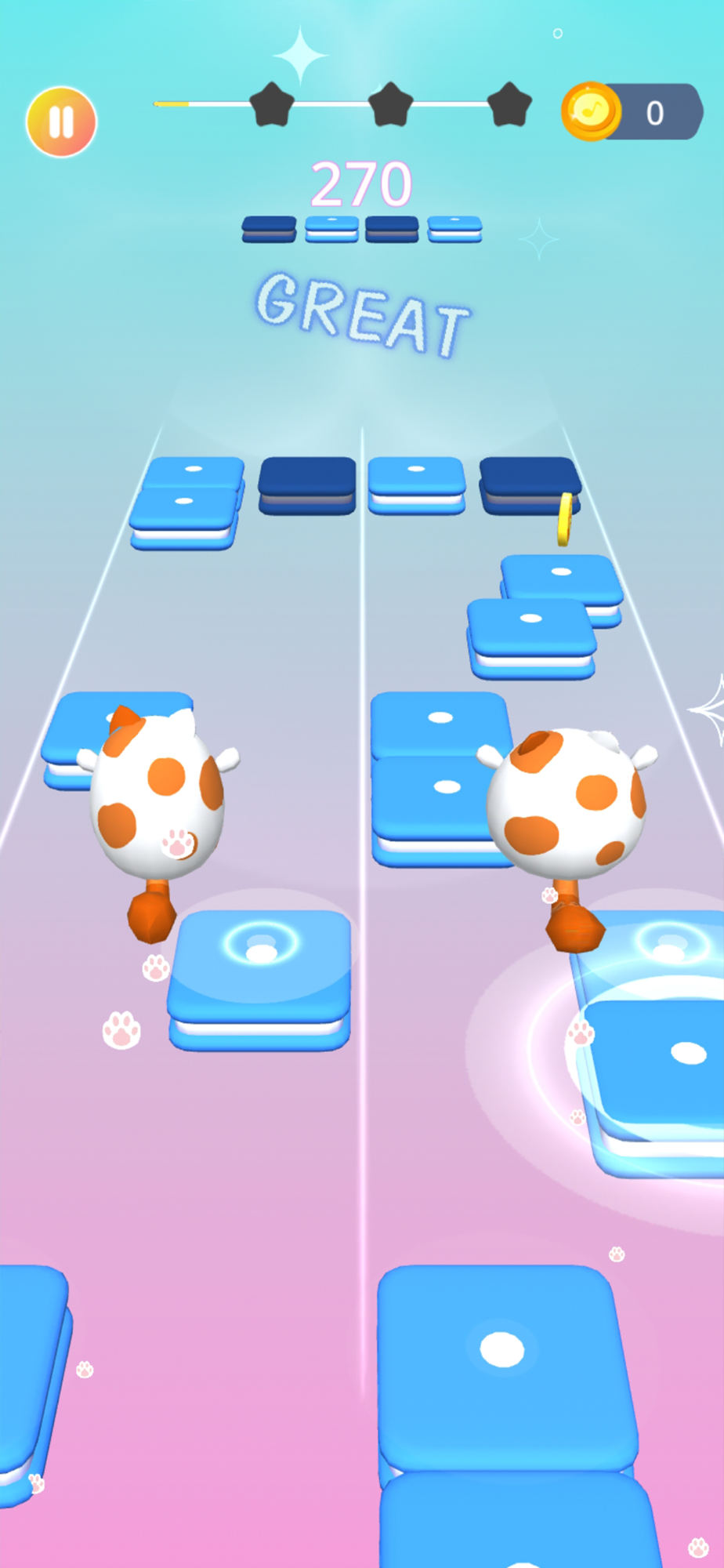 This game will create the whole new experience for music game lover, you can enjoy super amazing and beautiful "Cat Music". Hold and drag the cat to make it jump on the correct tiles.