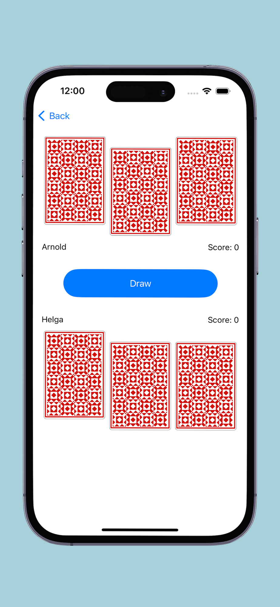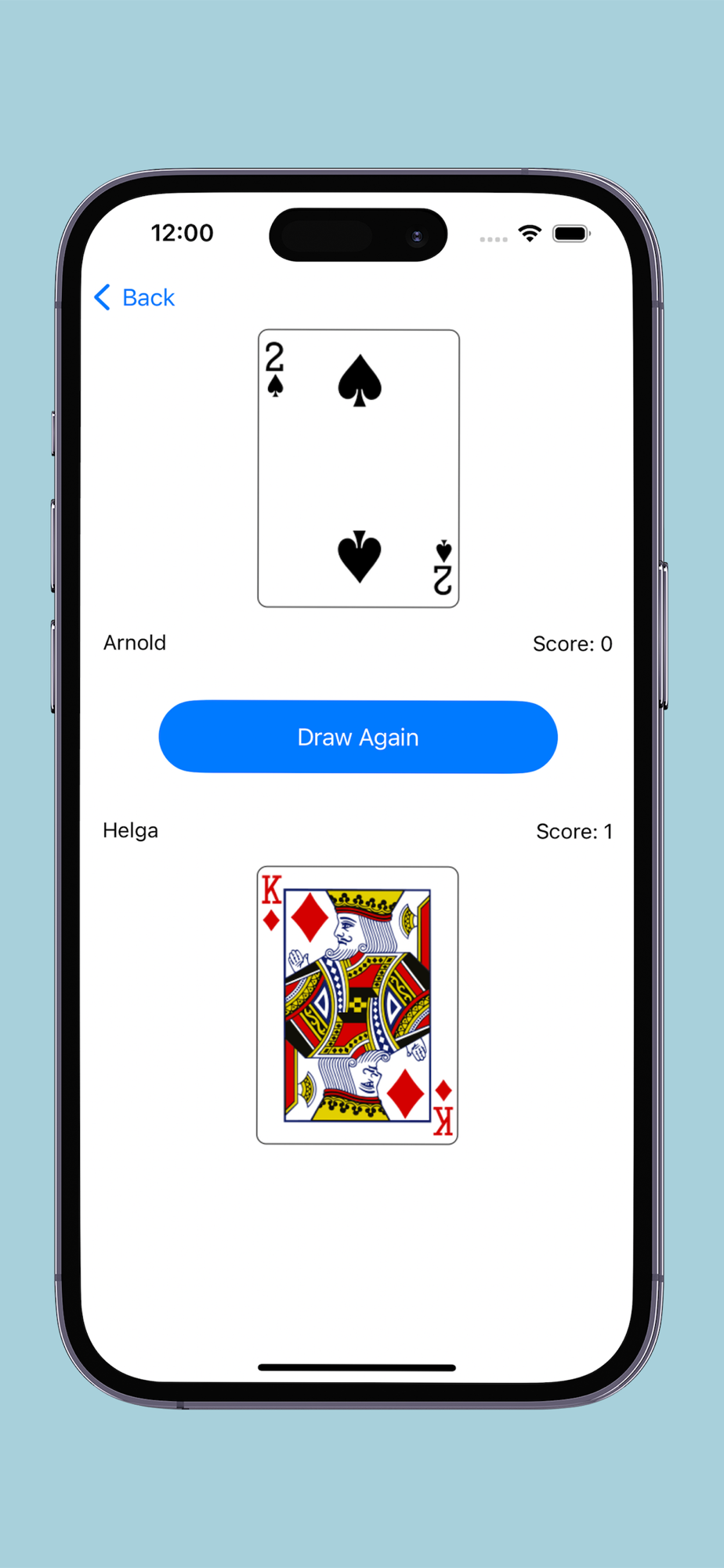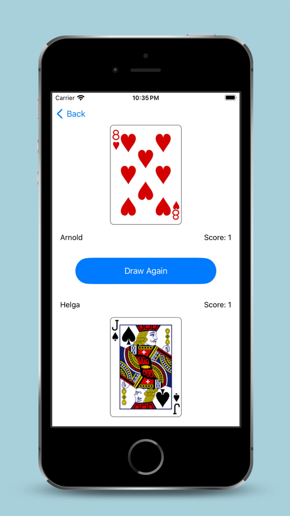 Two players can go head to head to settle a score. The rules are simple: each user draws a card, the highest value card gains a point, and the best 2 out of 3 wins the game.