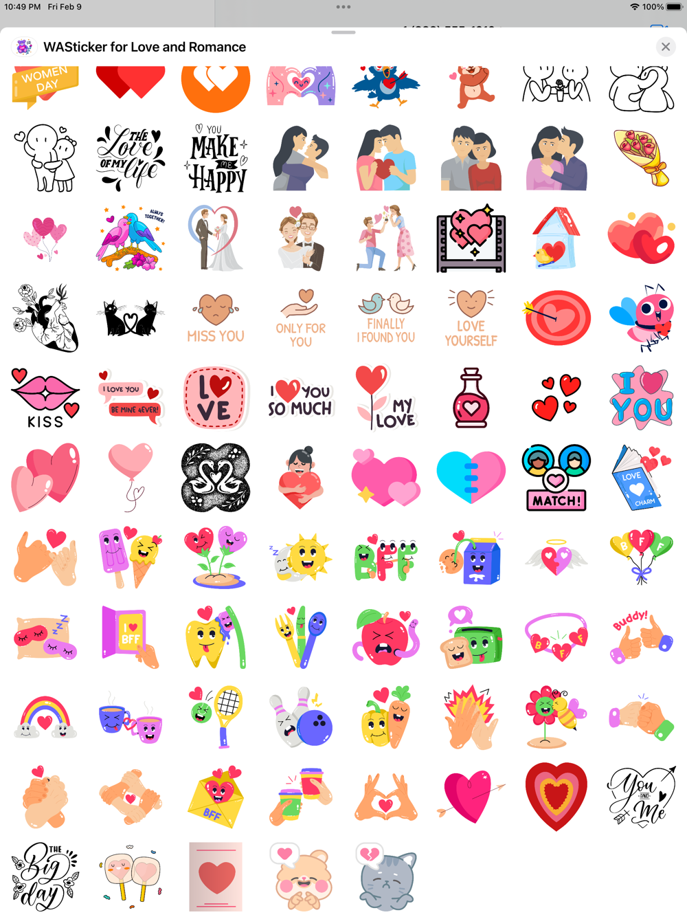This is your personal love stickers chat in your daily conversations powering you with large and carefully chosen love stickers and romantic stickers collections for WASticker including Love and relationship stickers and couples stickers.