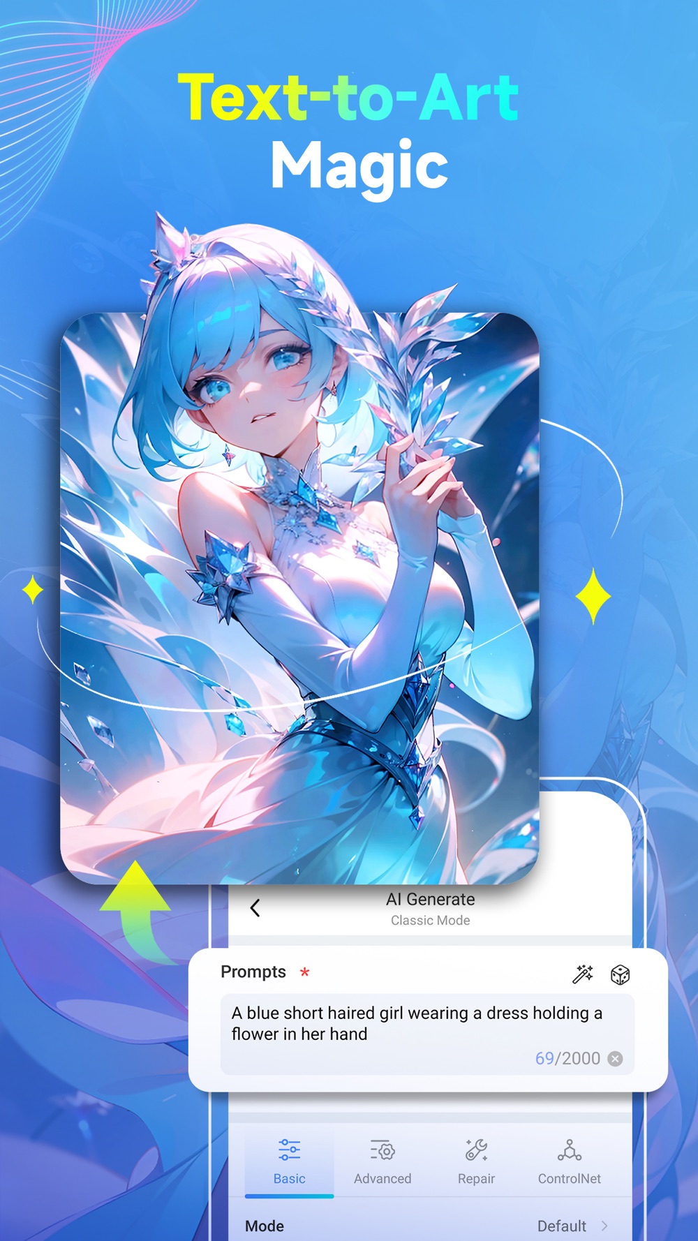 Professional Features: SeaArt meets the needs of all users—beginners can generate images and videos with one click, while professionals can adjust parameters for high-quality creations. Express your art without limitations and satisfy your pursuit of detail with text-to-image, image-to-image, text-to-video, image-to-video, partial repainting, LoRA, ControlNet, and other professional features.