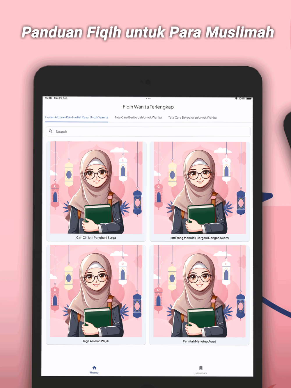 Aplikasi kitab Fiqih Wanita Lengkap ini juga terdapat kajian ilmu fiqih untuk wanita baik itu tentang darah maupun tata cara beribadah serta larangan-larangan yang tidak boleh dilakukan seorang wanita muslim. Fiqih Wanita Lengkap ini berisi tentang pembahasan mengenai hal ketentuan wanita dalam islam