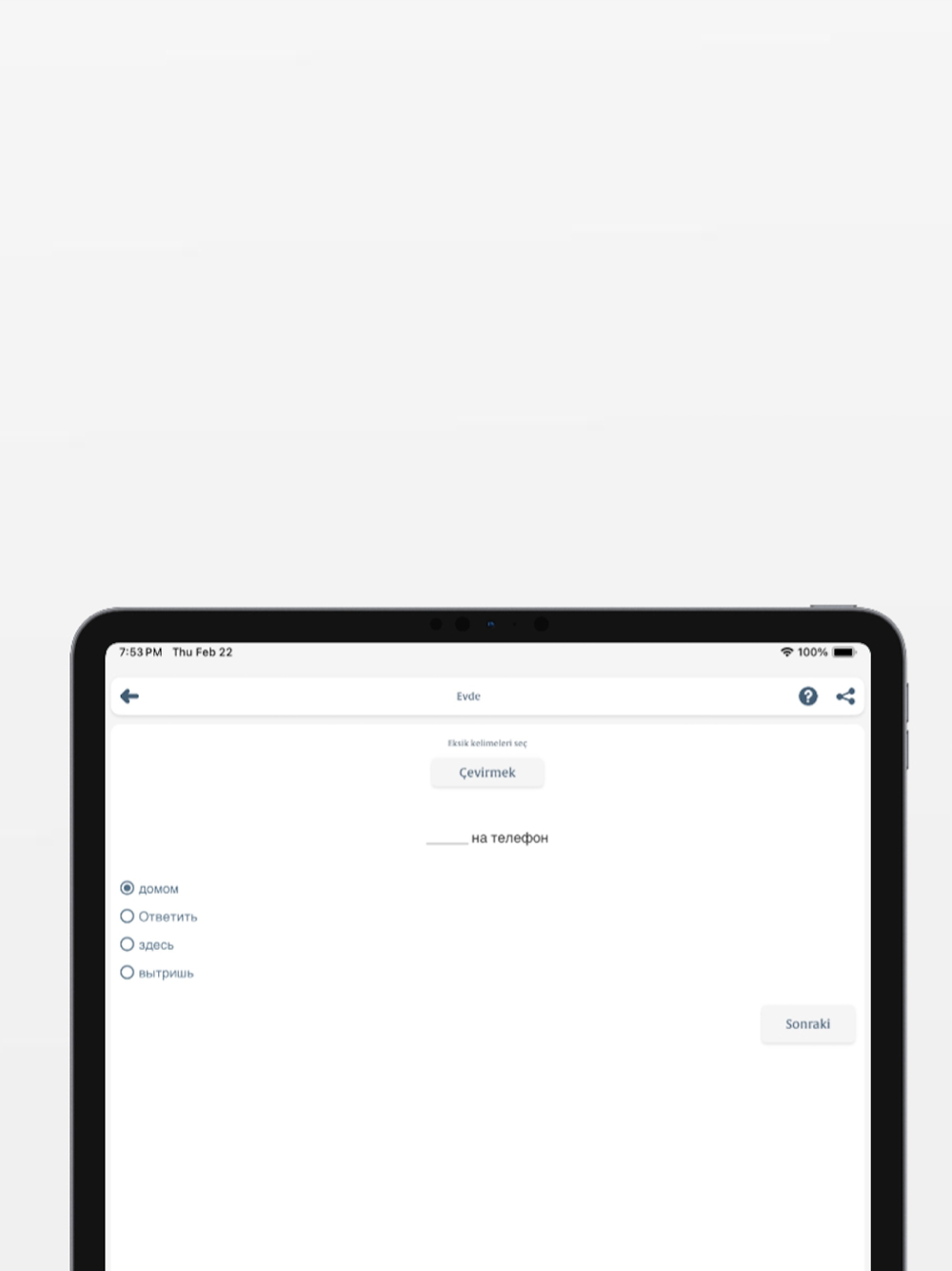 Uygulamamız özellikle Türkçe konuşanlar için tasarlanmıştır ve Rusça kavramları kolayca anlamanıza yardımcı olmak için Türkçe çeviriler, açıklamalar ve örnekler sunar. İki dil arasındaki boşluğu kapatarak sorunsuz bir öğrenme deneyimi sağlar.