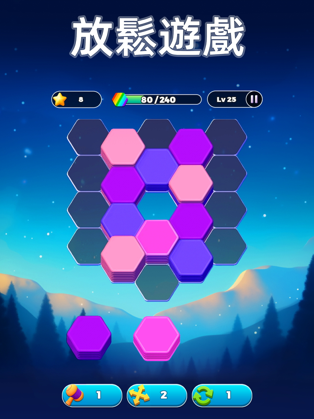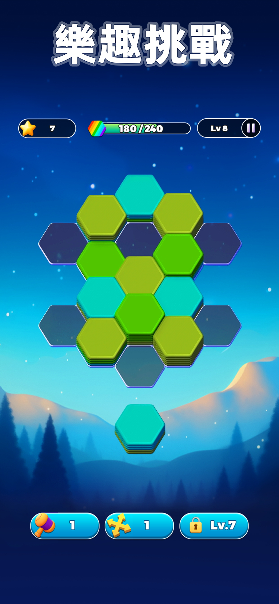 - 創新的 3D 六角拼圖遊戲玩法,突破了傳統六角拼圖的界限
