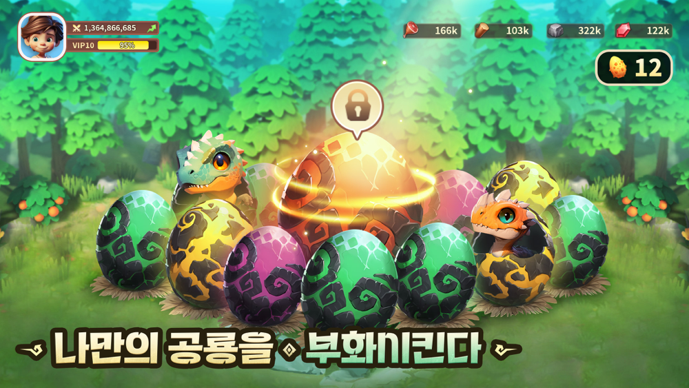 선사 시대 공룡알을 키워라. 모든 알 속에는 무한한 가능성이 깃들어 있다. 작은 공룡을 거대한 공료으로 길러서 나만의 공룡 군단을 만들어라.