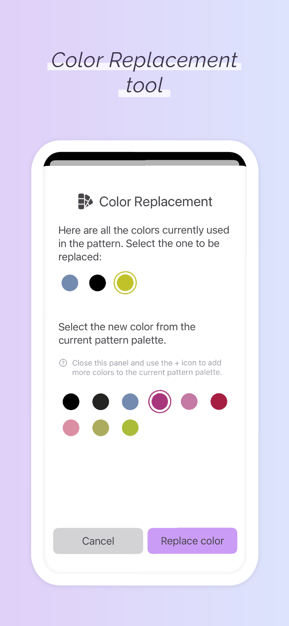 Import an image or start from scratch to design your first pattern. At any point, you can resize the pattern, change the background color, replace a color, or edit the background image. With our image effect slider, you can directly transform a background image to make it easier to reproduce as a cross-stitch model. The app contains more than 400 colors to choose from.