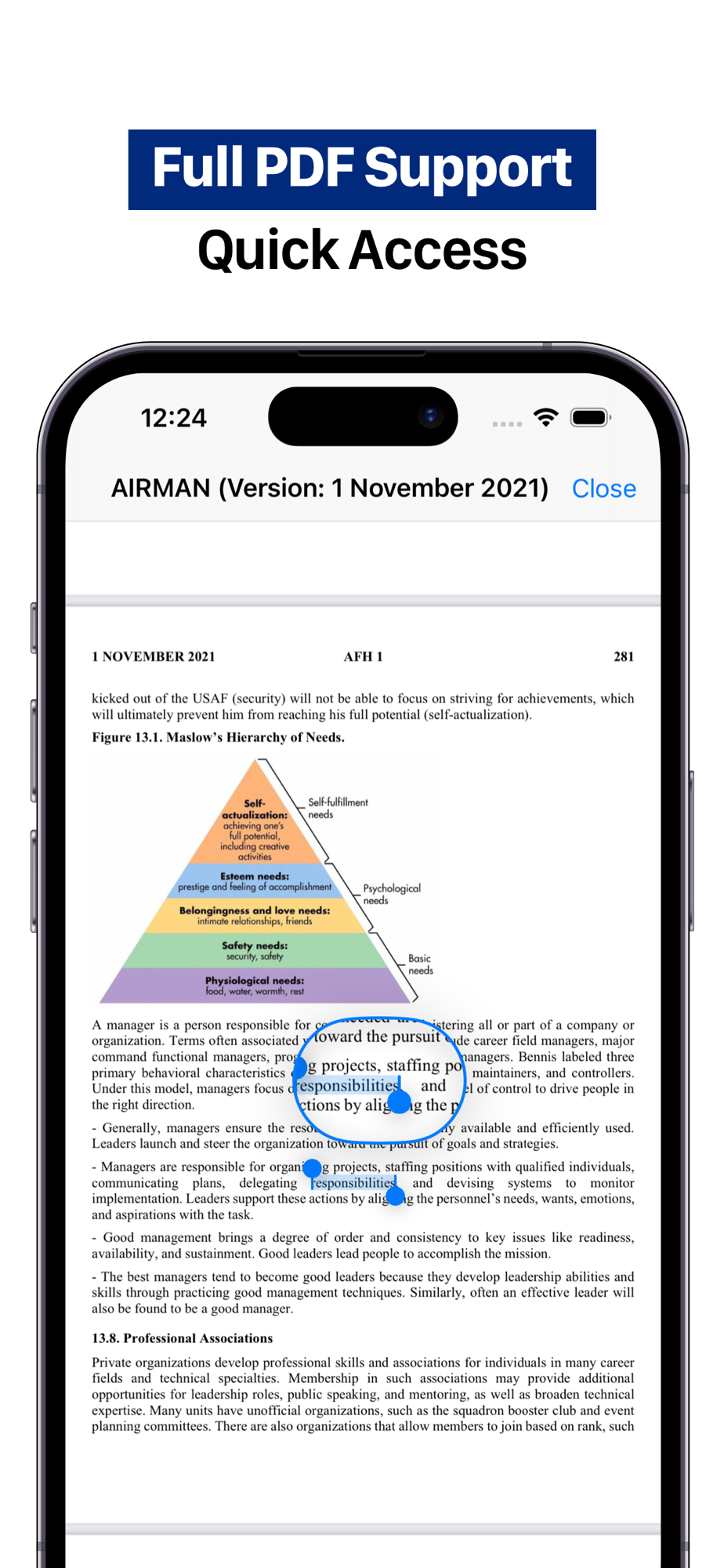 This app provides you with a library of 1700+ Air Force publications, that you can search for and open directly in the app.