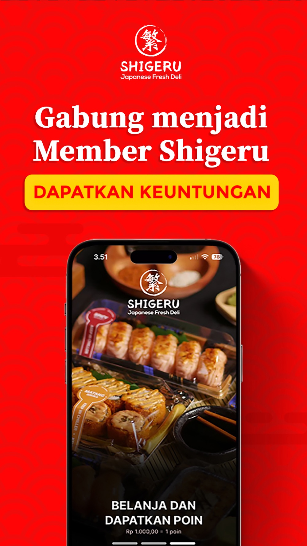 - Dapatkan special promo yang hanya bisa di dapatkan dengan menjadi member Shigeru.