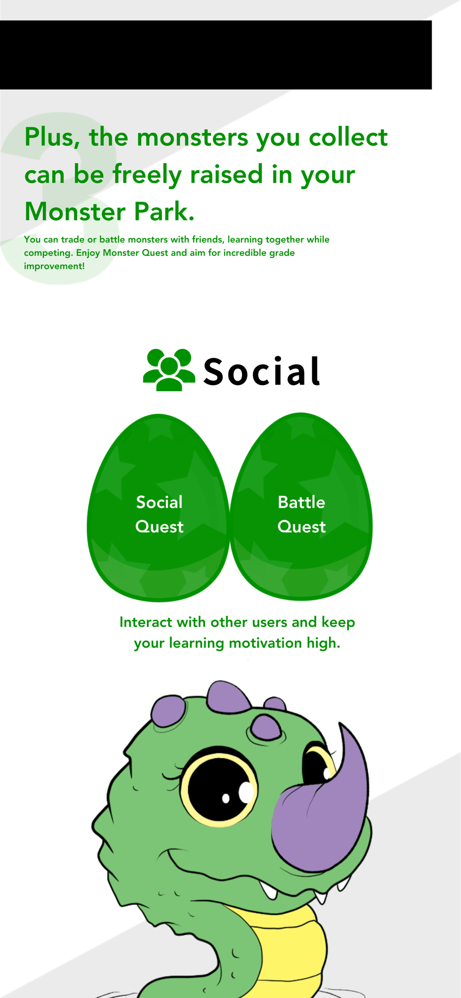 You can freely raise the monsters you've collected in your own Monster Park. Exchange and battle monsters with friends, learning and competing together. With Monster Quest, aim for incredible academic improvement while having fun!