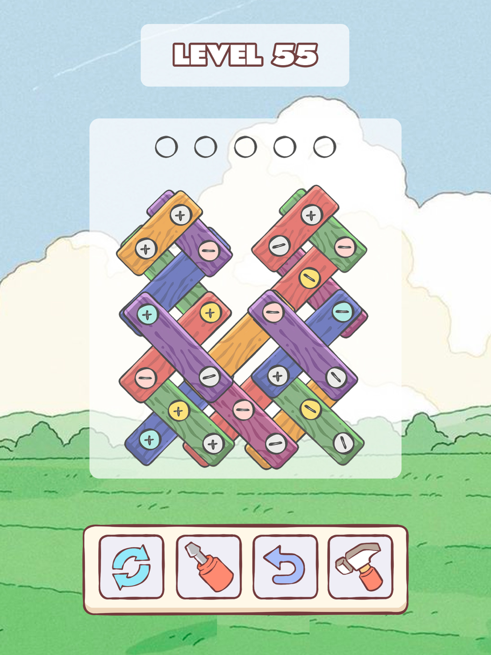 - Creative Gameplay: Master the art of strategically rotating and aligning wooden bolts and screws to unlock each puzzle.