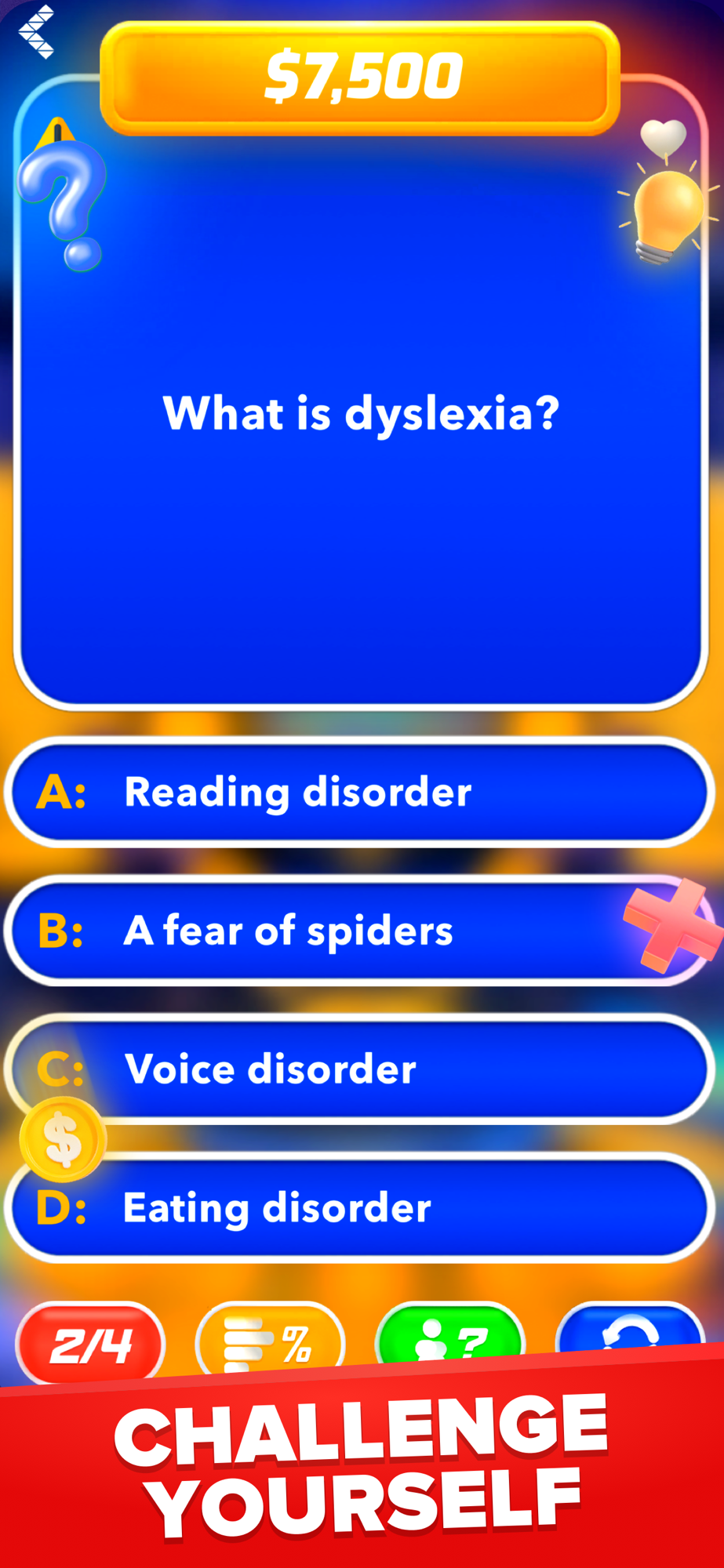 Challenge Yourself with Millionaire – The Ultimate Quiz & Trivia Game! Sharpen your brain with questions that boost your IQ, improve your memory, and test your thinking and logic. Show off your smarts and broad knowledge in this fun quiz game packed with trivia questions.
