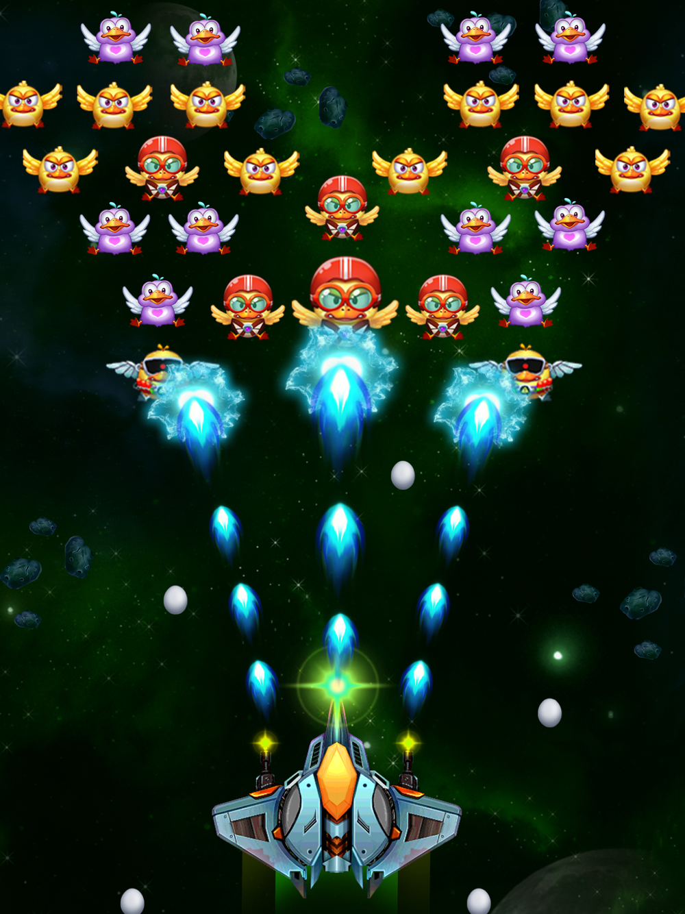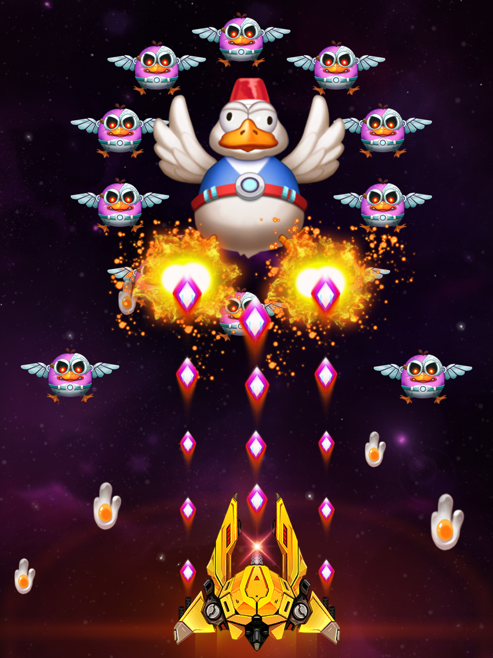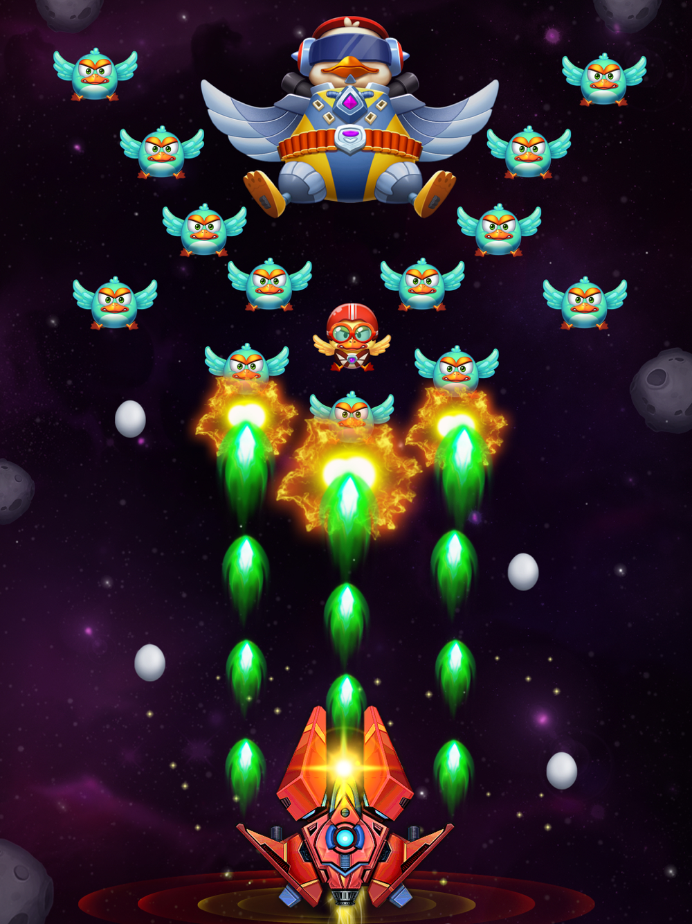 With its levels streamlined from easy to harder, Chicken Attack - Space Shooter not only helps new apprentices how to play but also brings challenges to experienced commanders. And no stress from work or school can enter the Galactic Attack - Alien Shooter world!