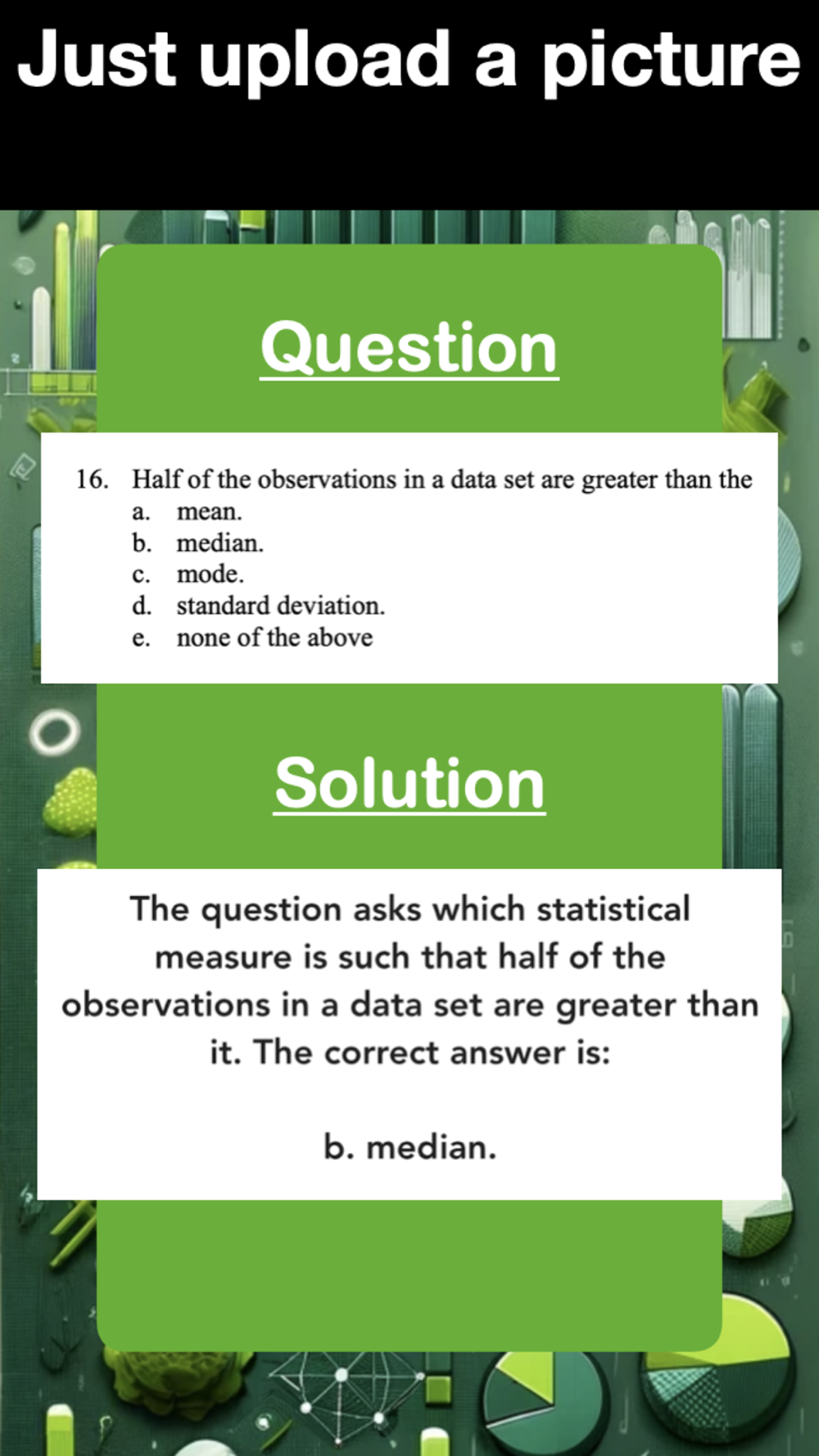 Snap, Upload, and Solve with Statistics AI – Your Instant Statistics Problem Solver! Download now for FREE.