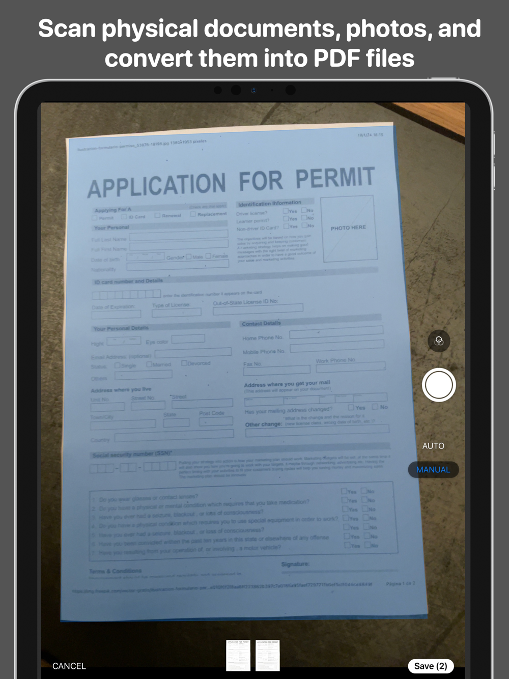 · Scan physical documents, objects, and photos using your iOS device's camera.