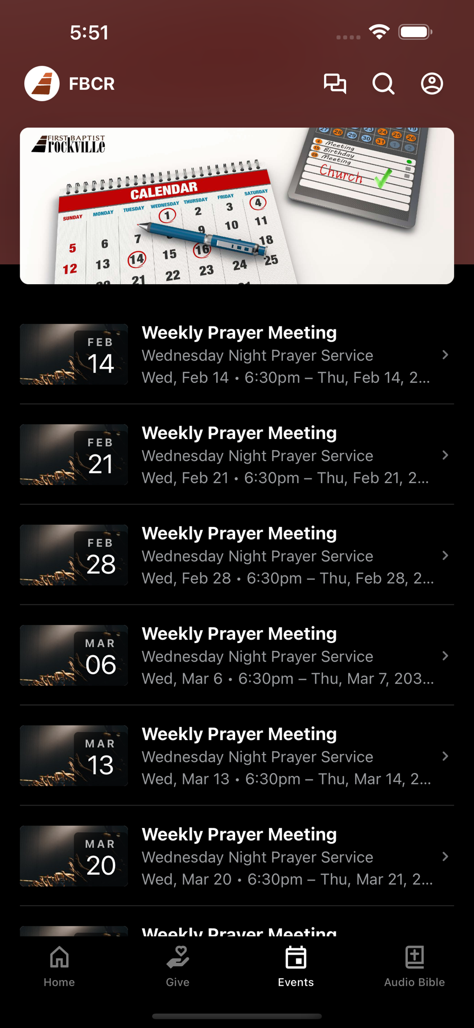 This app will help you stay connected with the day-to-day life of First Baptist Church of Rockville. With this app you can: watch or listen to past messages; stay up to date with push notifications; share your favorite messages via Twitter, Facebook, or email; and download messages for offline listening.