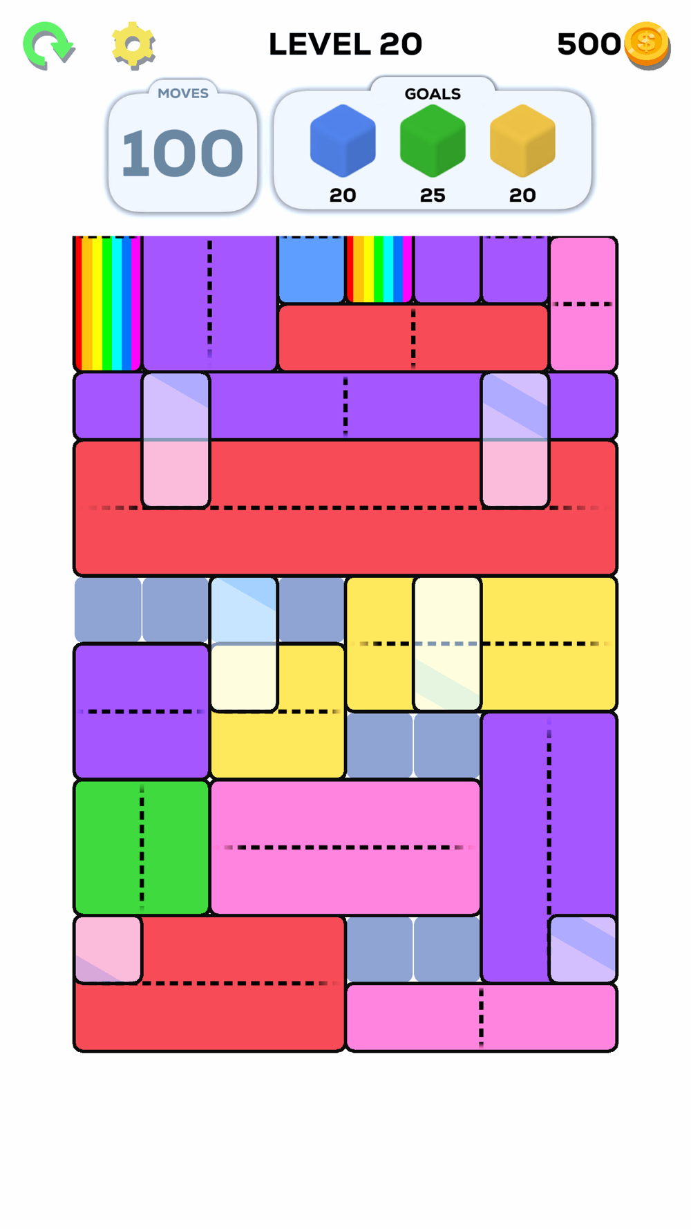 Dive into the captivating world of "Fold Tiles," where your puzzle-solving skills are put to the test! In this engaging and addictive game, you'll encounter various sizes of foldable tiles, each moving with the force of gravity. Your mission is to strategically fold and match tiles of the same color, clearing them from the board to complete each level's objectives.