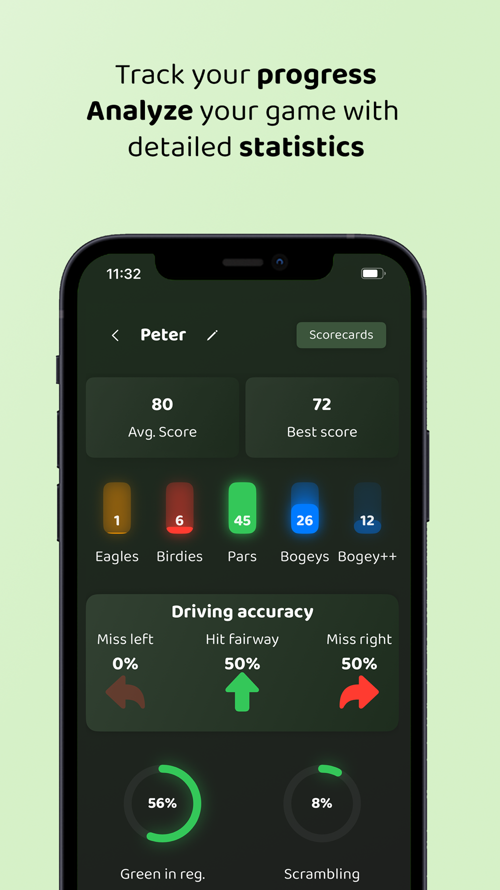After the round, dig into your numbers. Spot trends, highlight strengths, and see where you can pick up strokes.