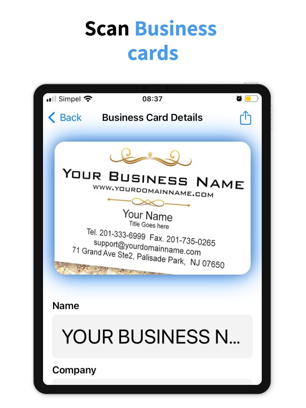 Utilizing cutting-edge OCR (Optical Character Recognition) technology, this app enables users to scan business cards quickly and accurately, automatically extracting and storing key details such as name, job title, company, phone number and email address.