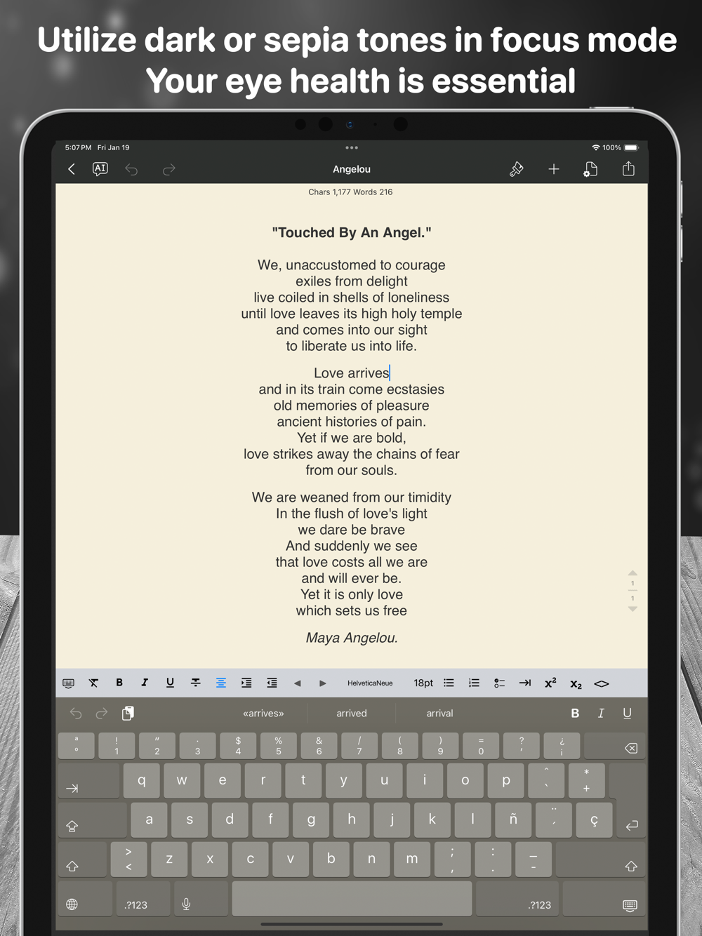 - Night Mode: Write comfortably at night.