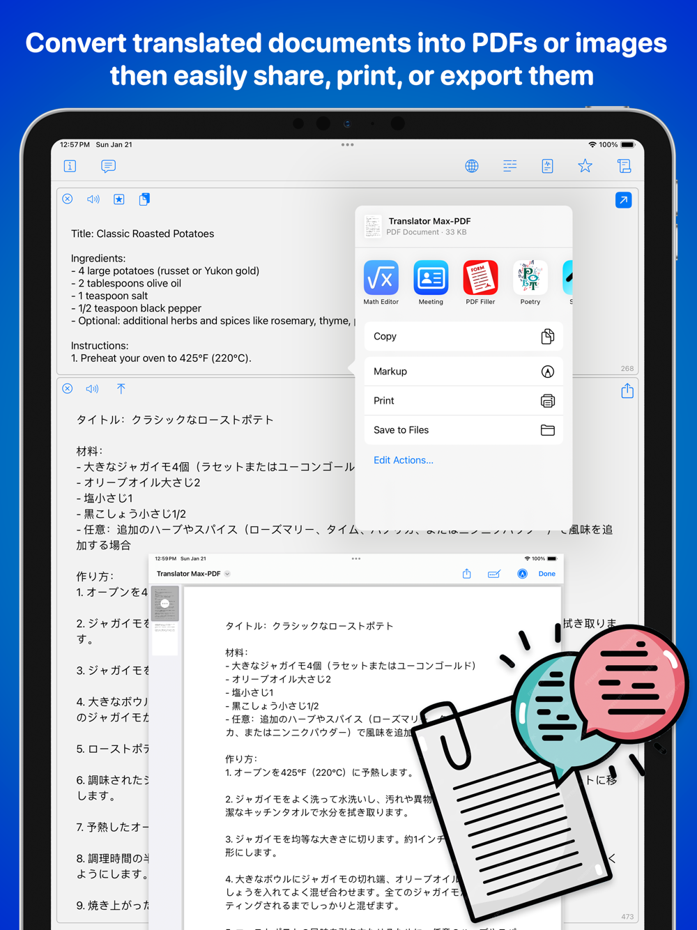 - Export and Sharing Options: Share your translations easily in PDF or PNG formats.