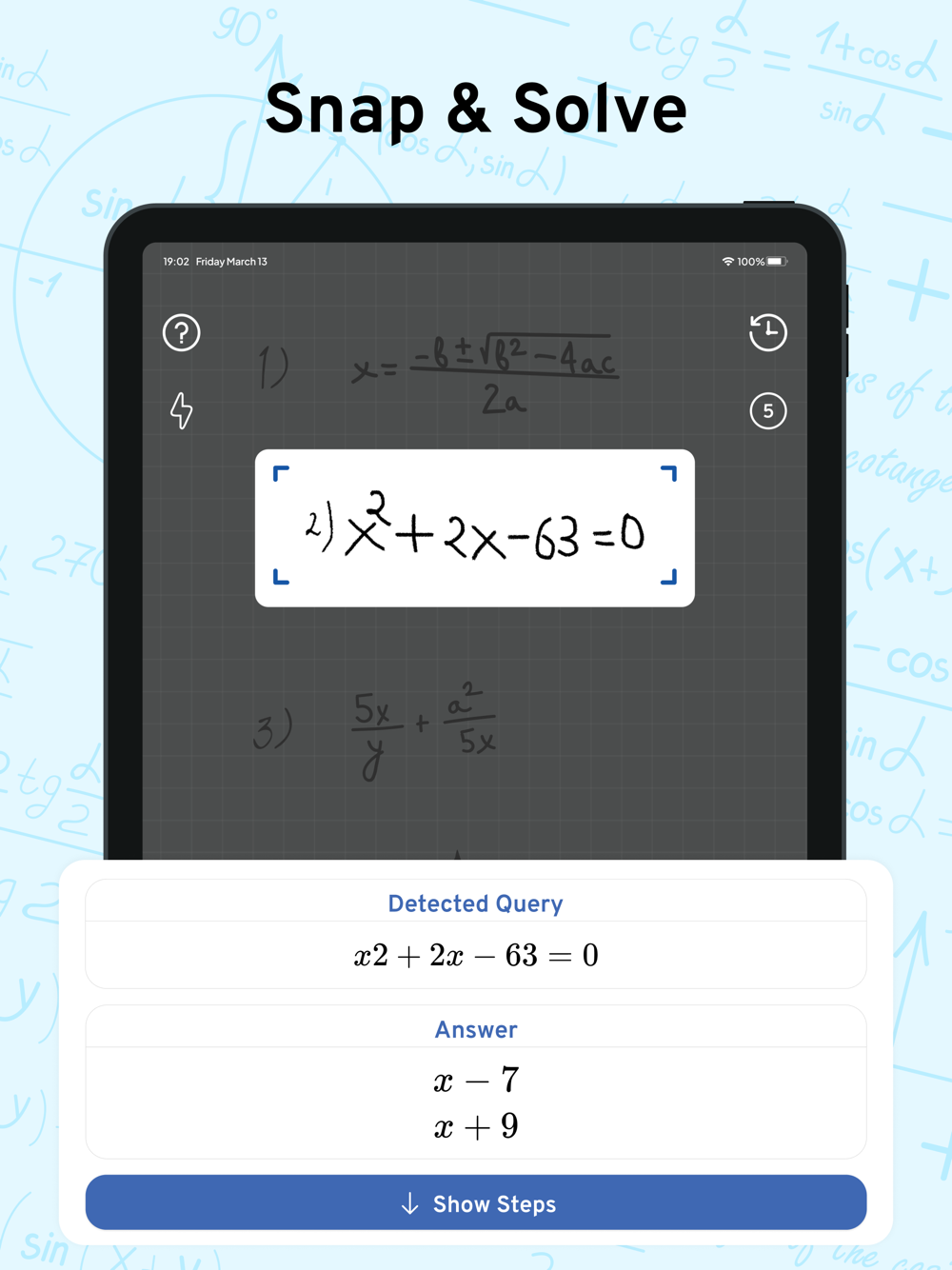 1. Digitalize e resolva: tire uma foto de qualquer problema matemático para obter soluções instantâneas e passo a passo.