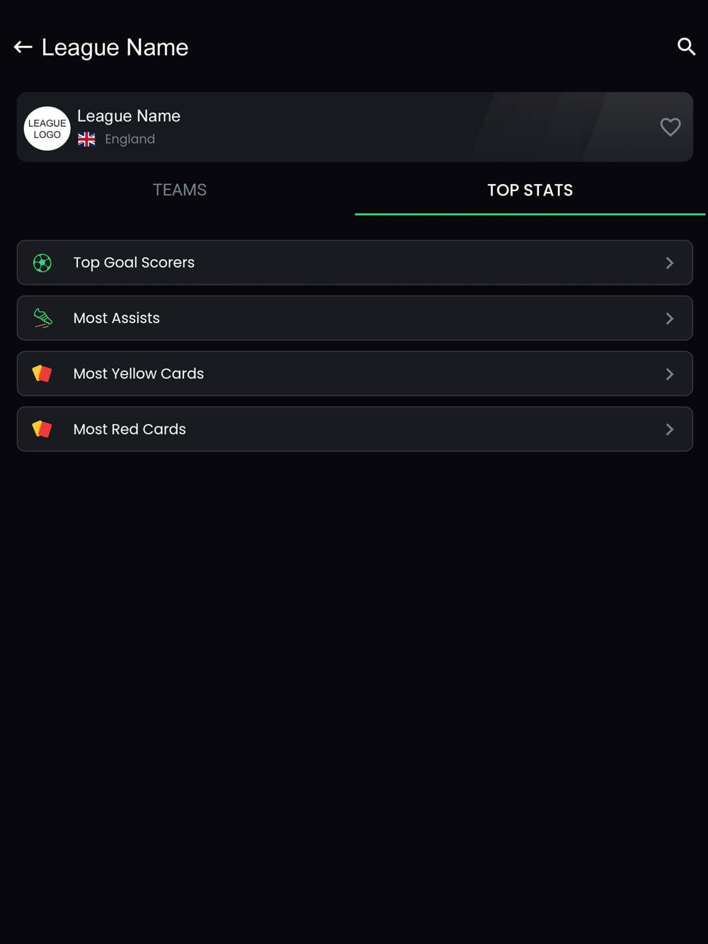 -Top Stats: Identify the top performers with ease. See who's leading the race for most goals, assists, shots on target, penalties scored, tackles won, and more, at both the league and team levels.