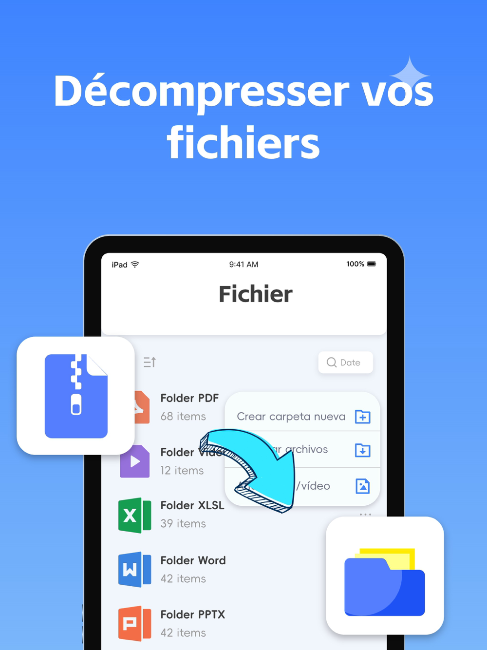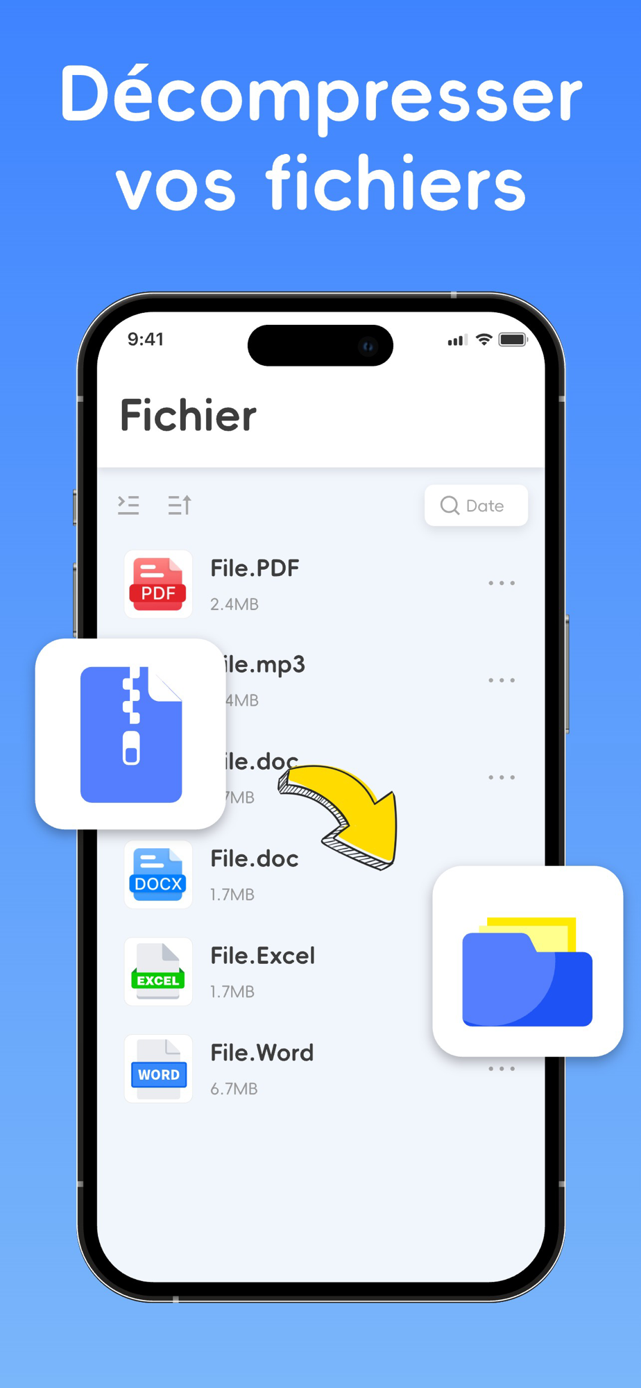 L'application Zip & Unzip File Extractor est un outil de gestion de fichiers volumineux zip et de formatage. Unzip peut extraire les fichiers ZIP, RAR, 7Z, TAR, GZIP et tous les autres fichiers compressés. Prend en charge l'extraction de fichiers d'archive multi-volumes.