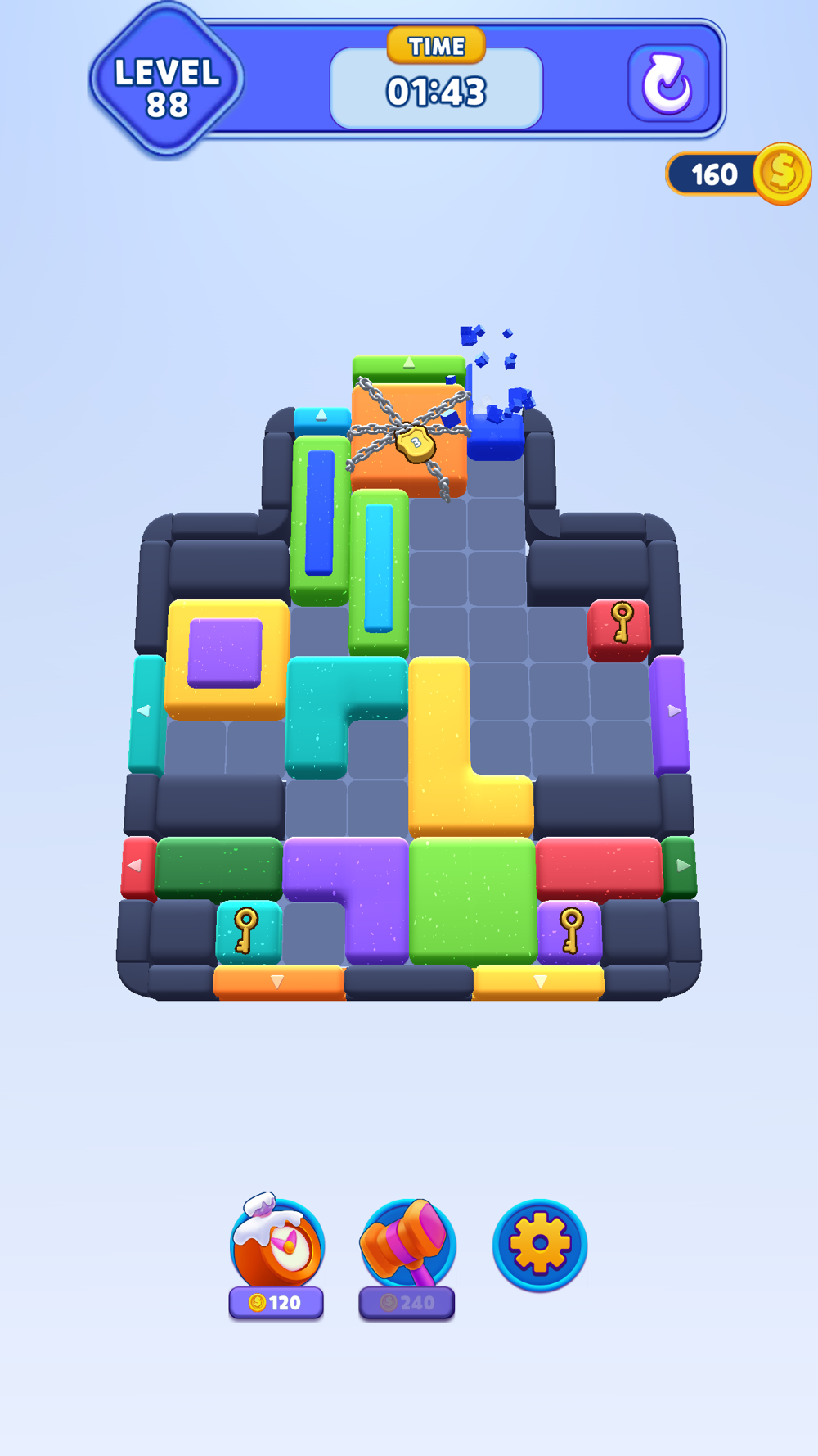 Think ahead! You’ll be given new blockers as you progress—plan your moves before running out of time.