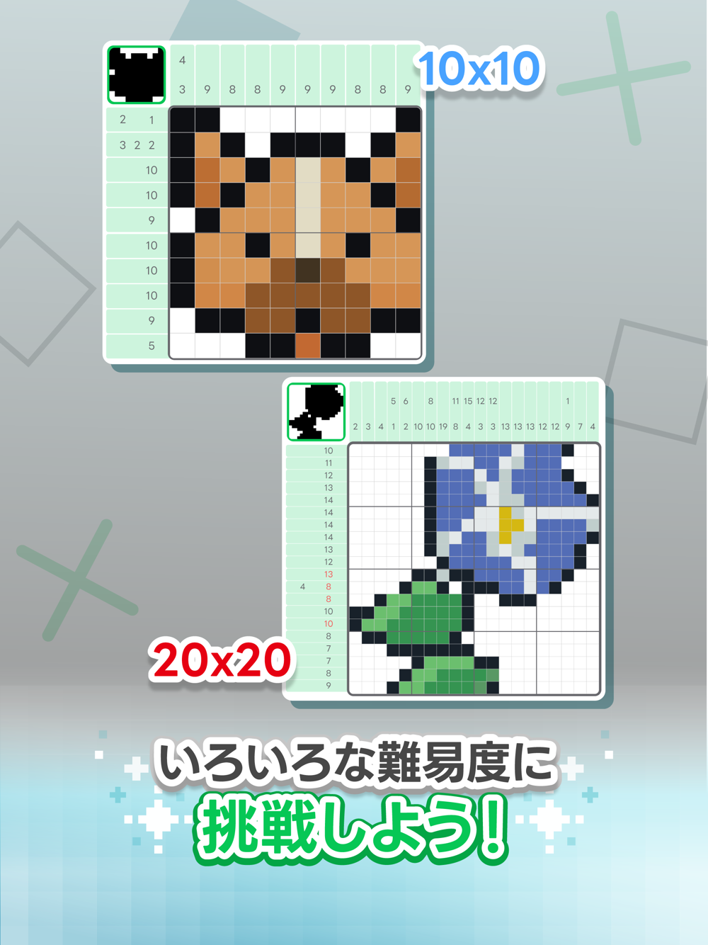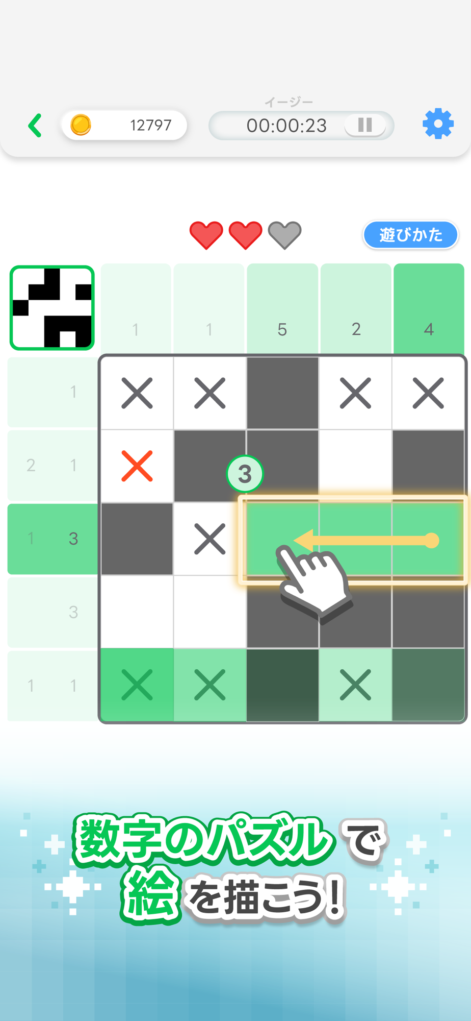 縦と横の数字を手がかりに進めるパズルゲームだよ。