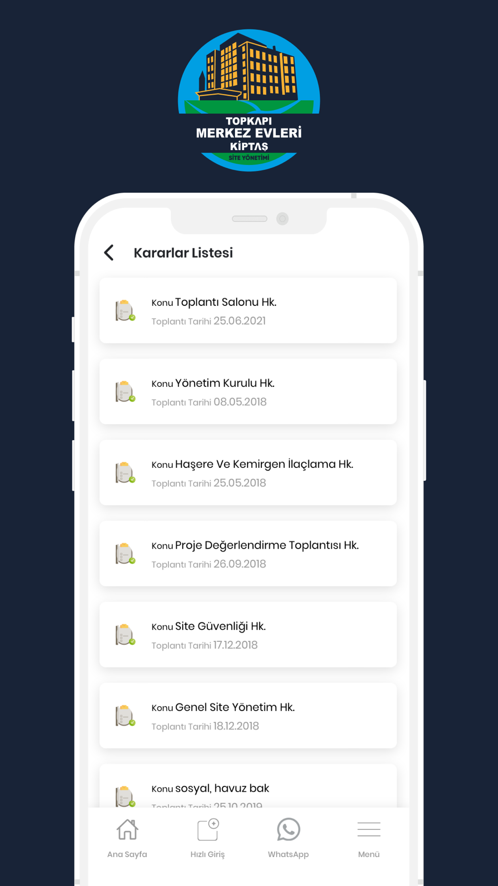 • Telefon Rehberi; Yönetici, Güvenlik Şefi, Nöbetçi Eczane vb. kişi ve yerler için iletişim bilgilerini görüntüleme,