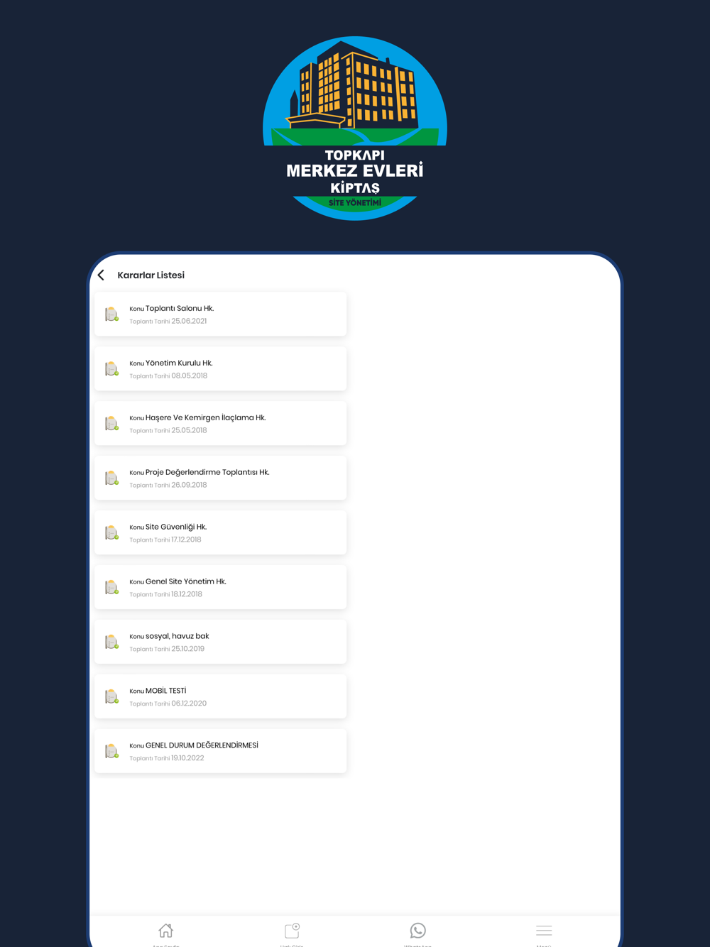 Hazırlanan bu uygulama sayesinde site sakinleri aşağıda listelenen özellikler gibi bir çok işlemi yönetim ofislerine gitmeye gerek kalmadan uygulama üzerinden kolaylıkla sağlayabilir.