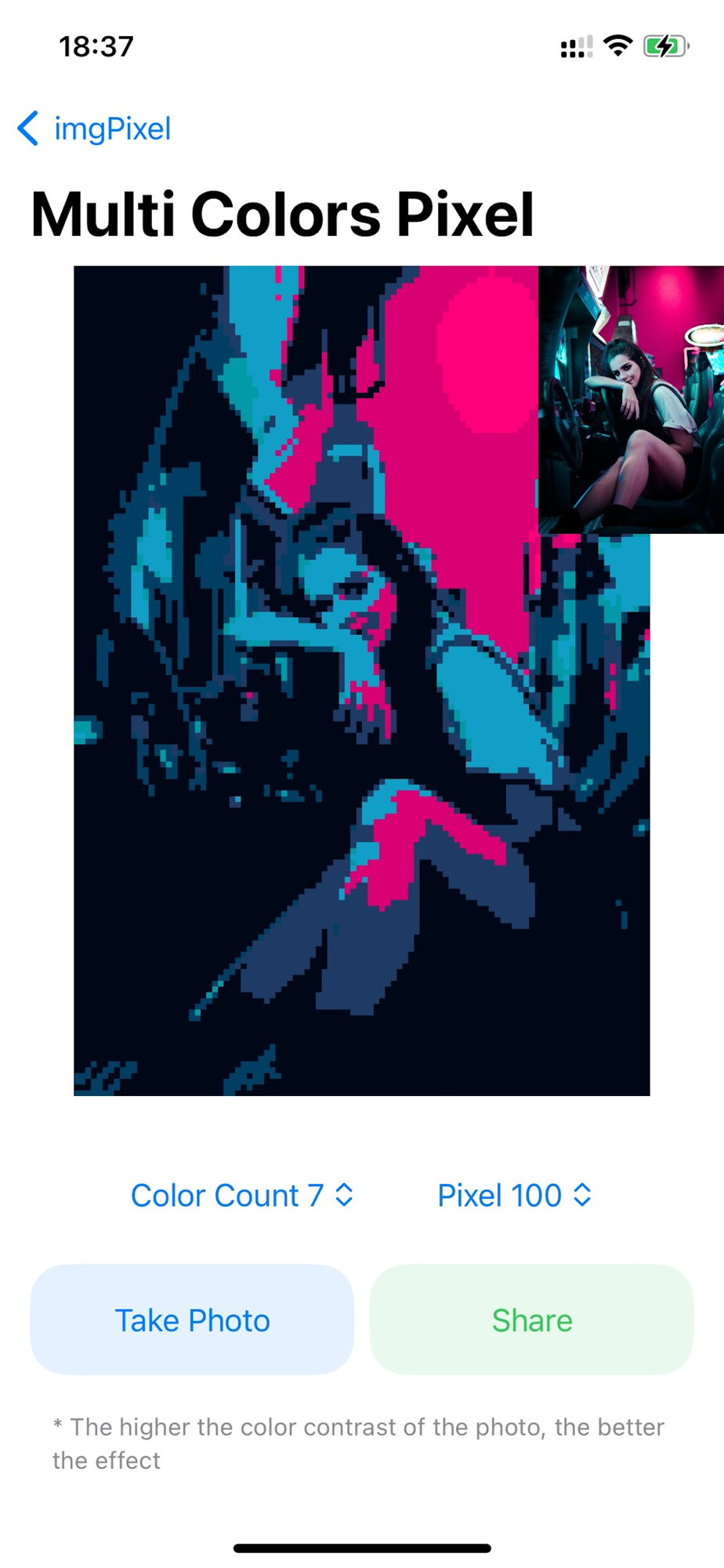 imgPixel is a photo editing app for creating pixel-style art photos. With imgPixel, you can generate pixel-style photos with one click