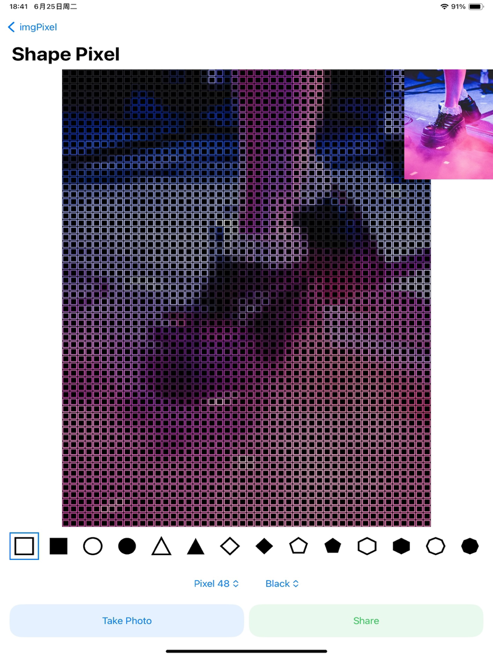 - Shape pixel : Use dozens of built-in preset shapes to replace square pixels to redraw new pixel-style effects