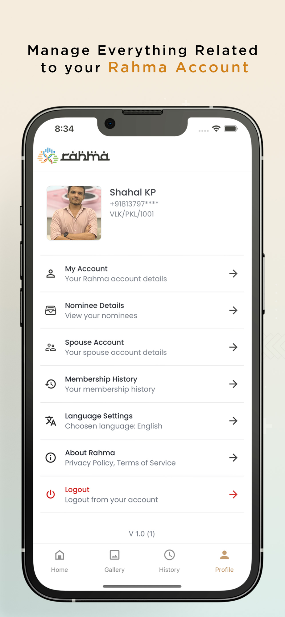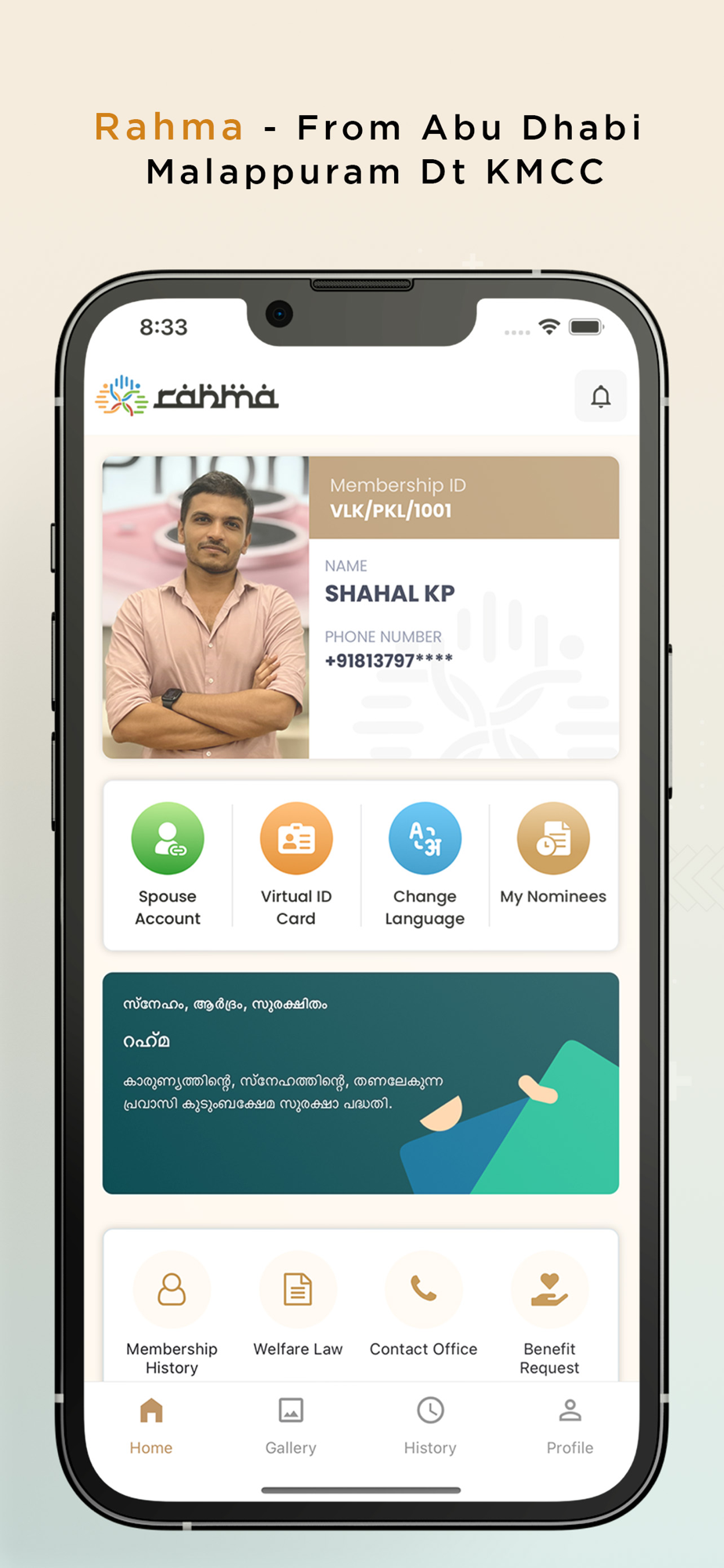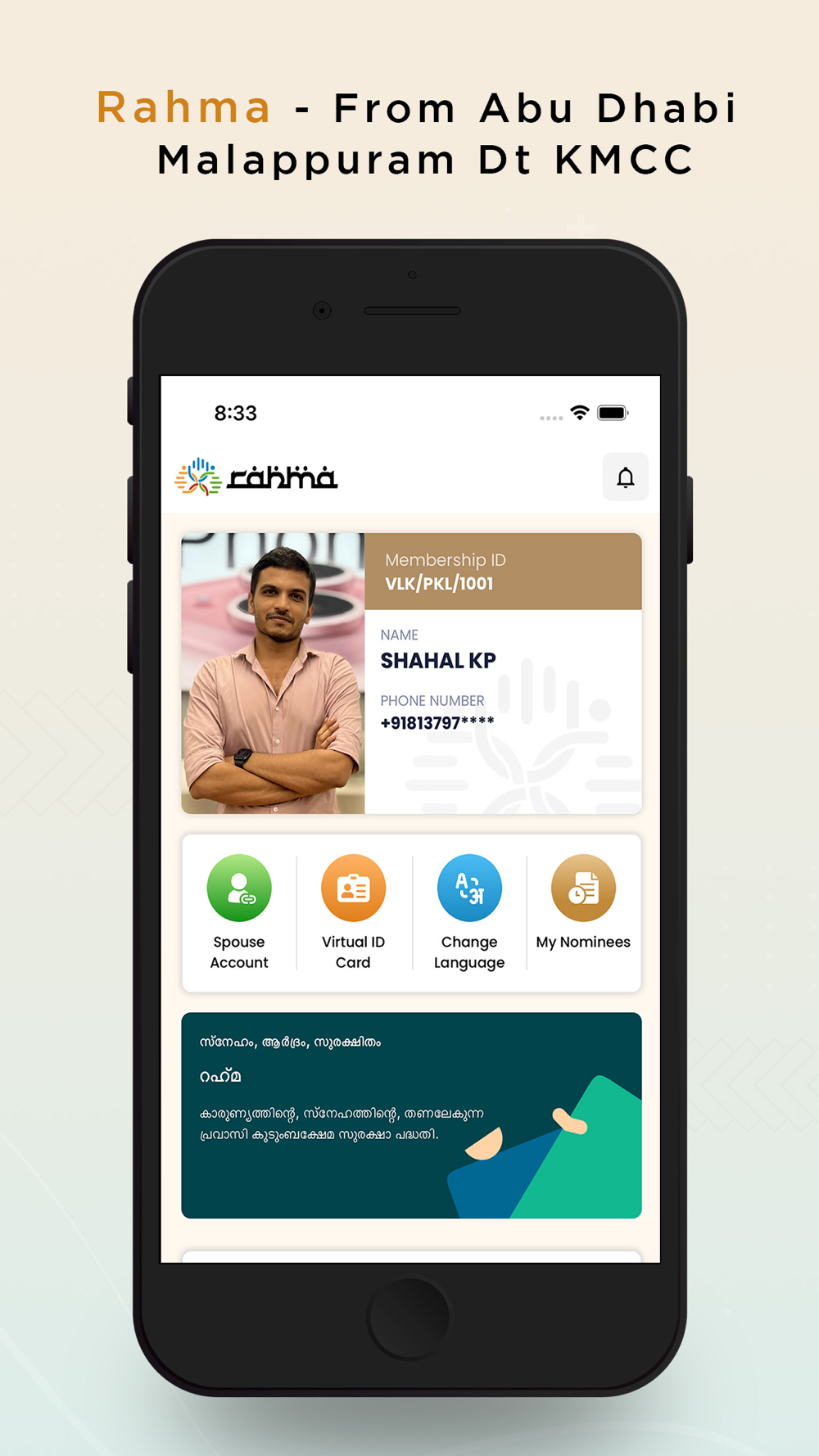 Exclusive application for Rahma members by Abu Dhabi Malappuram Dt KMCC. Members can easily access their virtual ID and manage their account information.