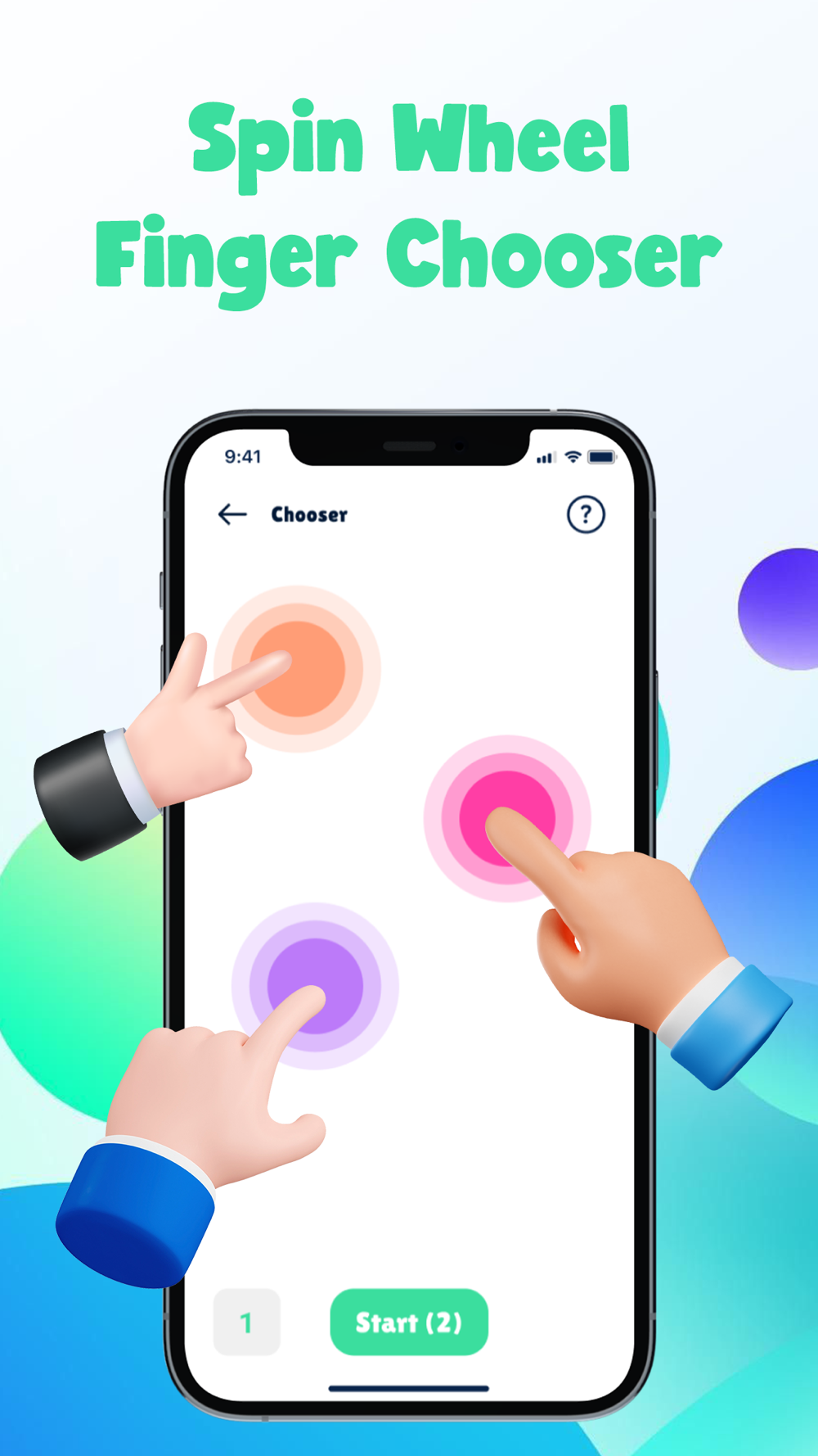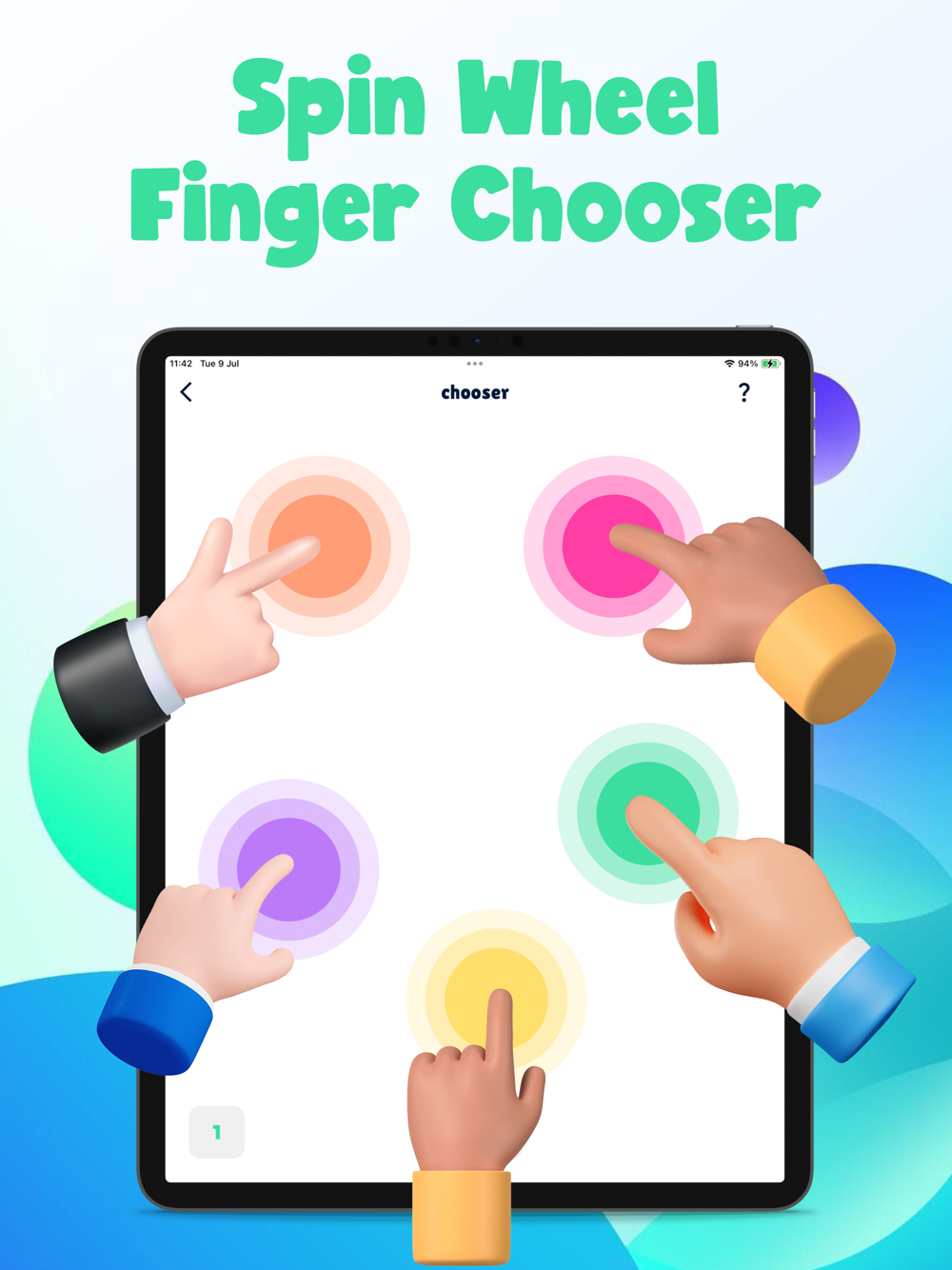 - Finger Picker: Place your finger on the screen and the app will randomly select the winner. Great for games, raffles, or any situation that requires a random choice.
