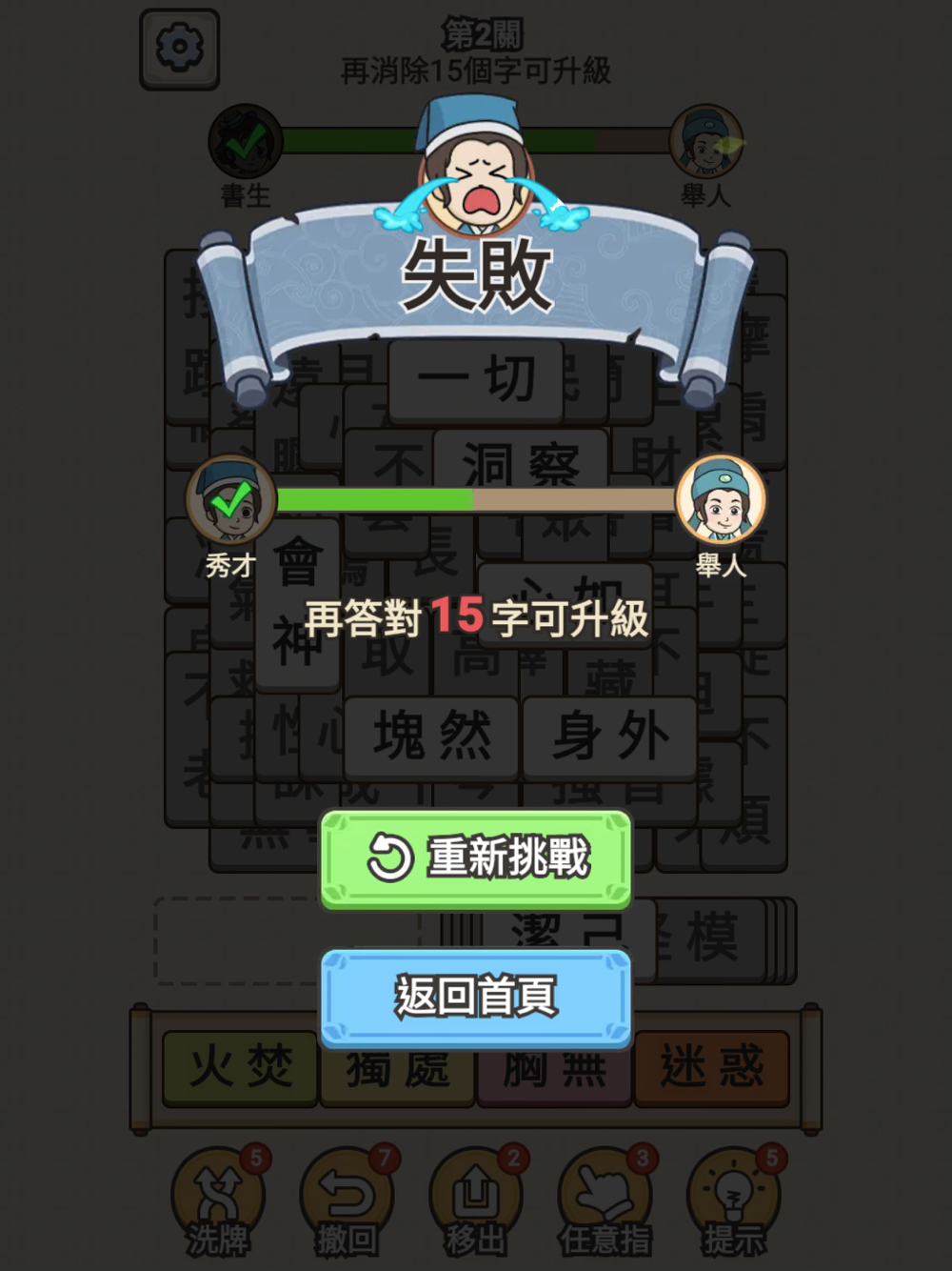 在不斷消除的過程中,你可以累計更多的四字成語,並解鎖不同的稱號成就。