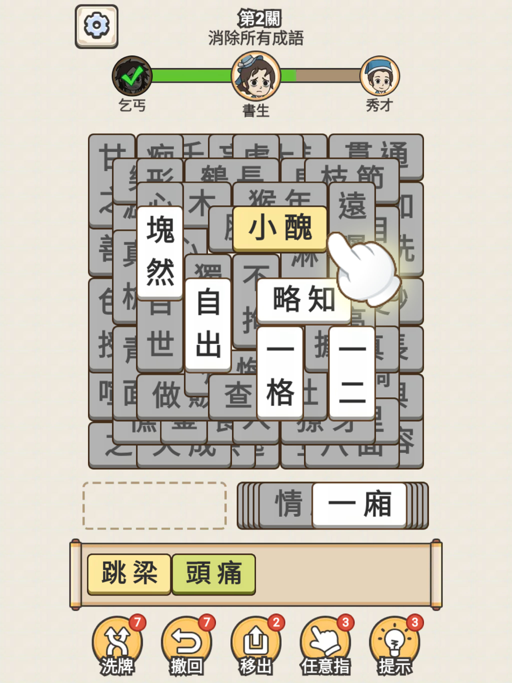 如果遇到無法配對的情況,別擔心!成語點點消提供了不同功能的提示道具,你可以隨時獲得幫助。