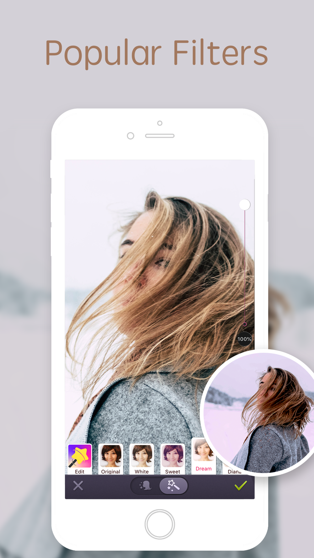 Skin smooth, whitening, face slim, eyes brighten, acne remove…All the beauty you wish, with just one tap!