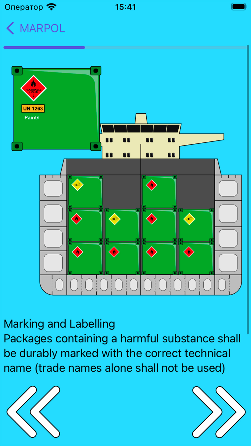Interactive course of the MARPOL Convention. All Annexes of MARPOL with detailed images. Lots of interesting and varied tests. Try to complete all the tasks and become a captain.