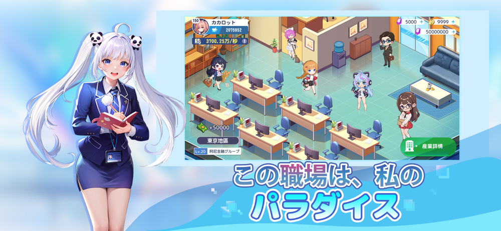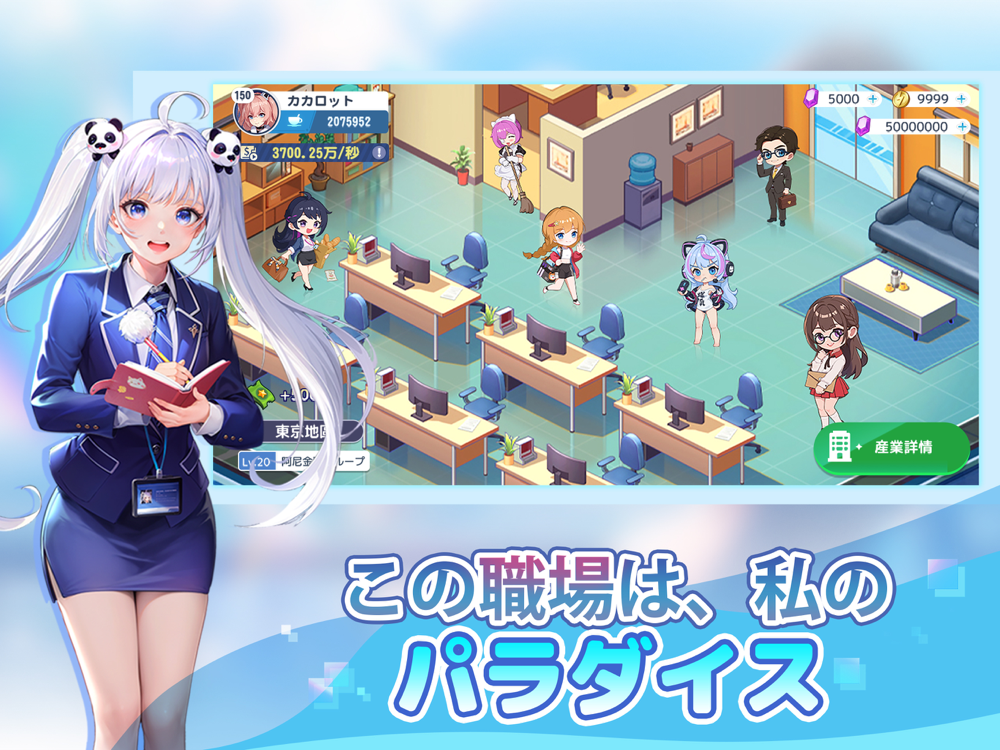 実力を上げる方法は様々。仲間育成、秘書の好感度上げ、社員募集、メインストーリーで次々と湧いてくる商売敵を倒していくなど!とにかく強くなっていく過程を楽しもう!