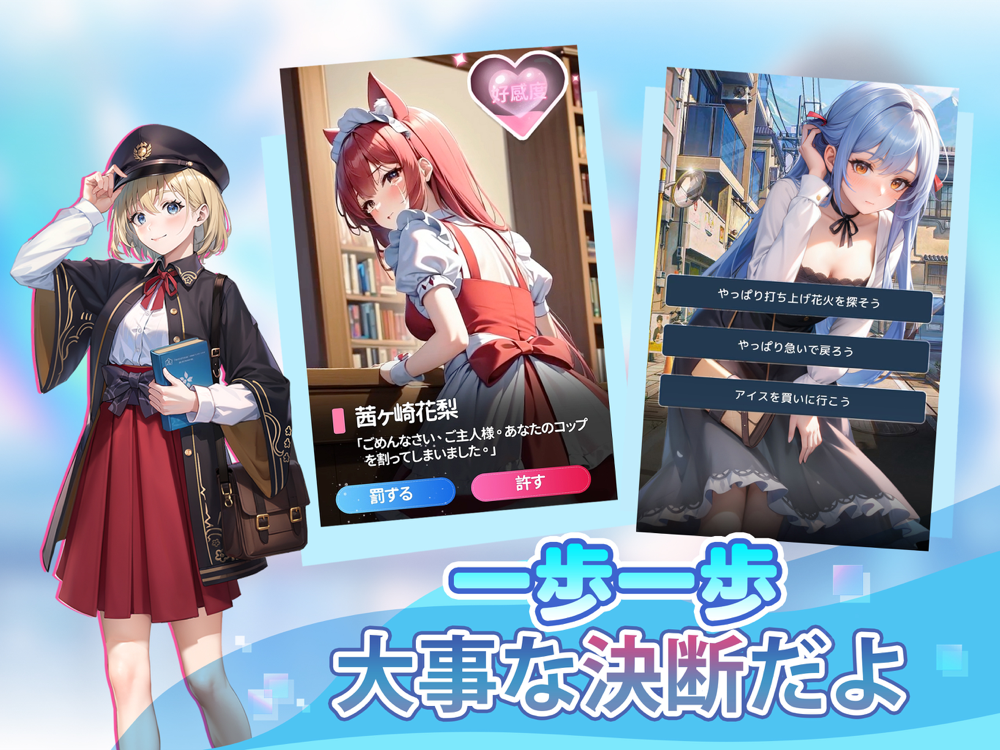 ビジネスと恋愛、一見平行線のようなものだが、ここでは不思議と交差する。美少女たちとのデートは意外と奥が深い!なめて適当に選択肢を選ぶと、壊滅の末路になることも?