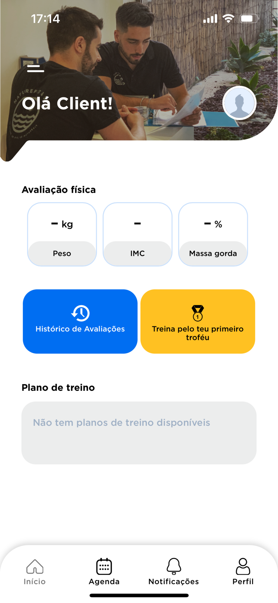 Aqui podes gerir o teu calendário, marcar aulas, aceder aos teus planos de treino, avaliações físicas e muitos mais.