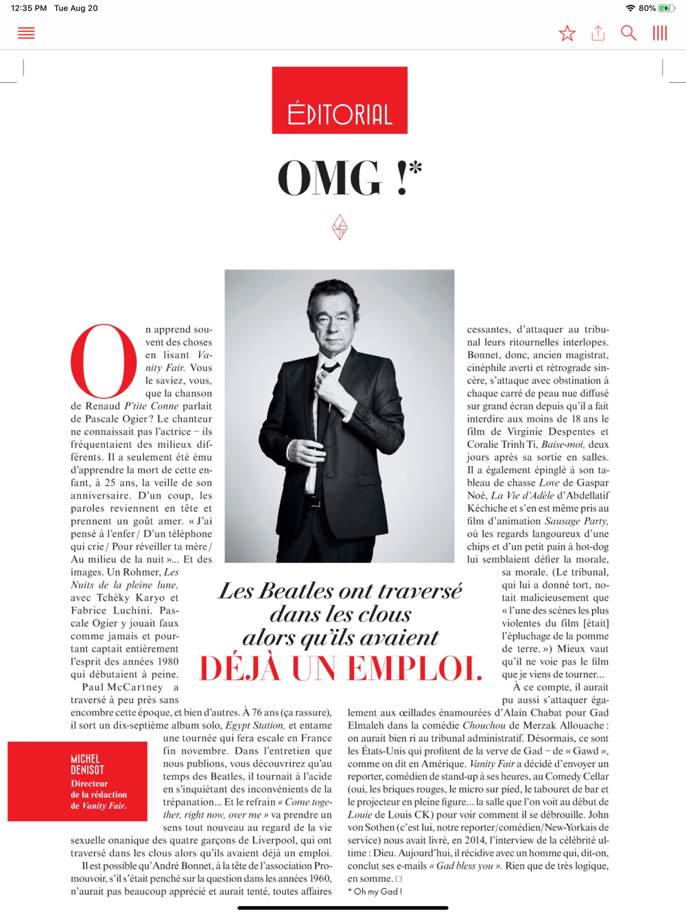 Investigation, culture, cinéma, mode, société… Les meilleurs récits et les histoires les plus exceptionnelles sont chaque mois dans Vanity Fair. Un rendez-vous de lecture unique et une ouverture sans pareil sur le monde qui vient, avec ses stars, ses histoires secrètes et ses destins singuliers.
