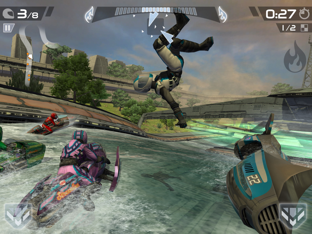 The premier console-quality water-racing game on mobile kicks everything into overdrive, with intense online multi-player races, upgradeable hydro jets and riders, improved graphics, an all-new career mode, and a whole new stunt system with dozens of new tricks!