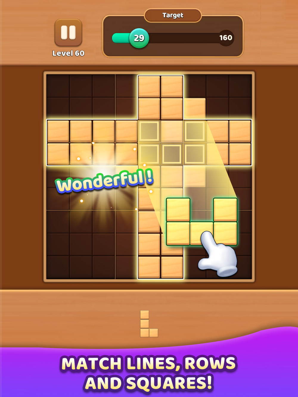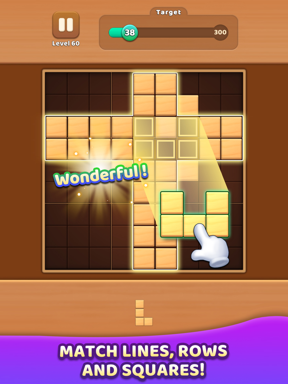 Each player will use their ingenuity to place wooden blocks into the 9x9 board and fill rows, columns or squares to clear blocks.