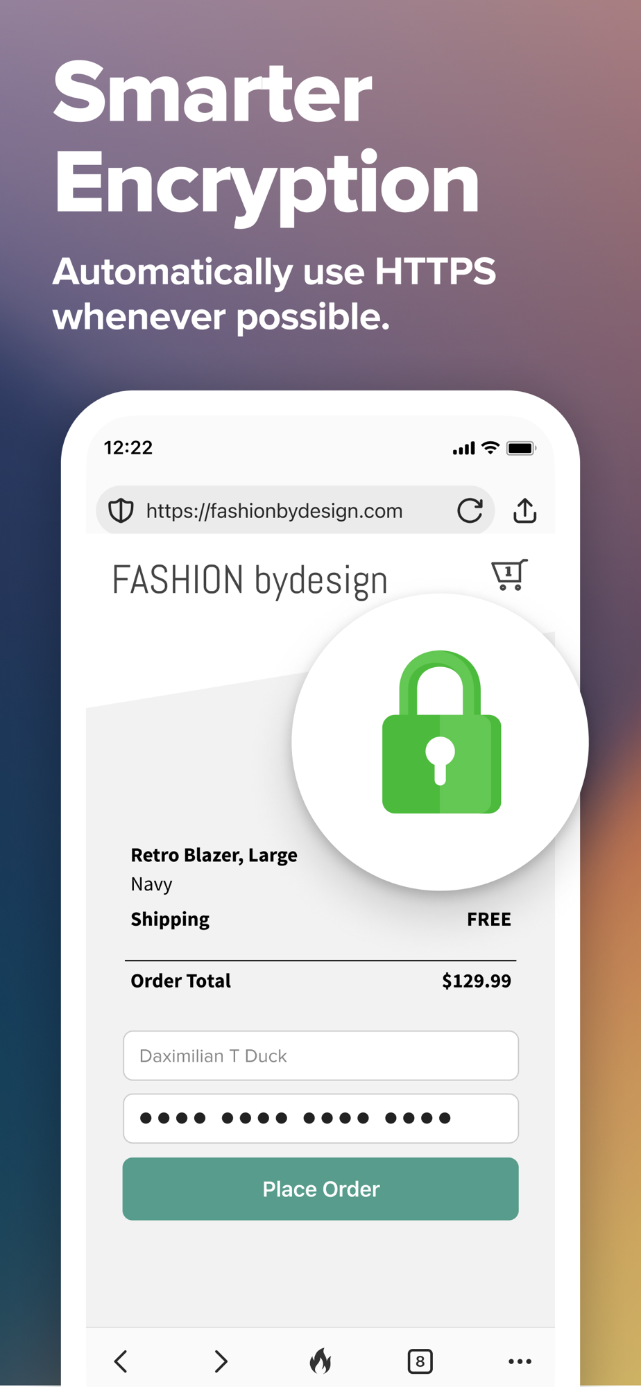 • Automatically Enforce Encryption - Force many sites you visit to automatically use an encrypted (HTTPS) connection, which helps shield your data from Wi-Fi snoopers and network onlookers like your Internet provider.
