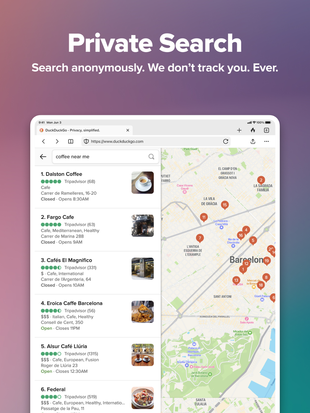 You don't need to wait to take back your privacy. Join the millions of people using DuckDuckGo and protect many of your everyday online activities with one app. It's privacy, simplified.