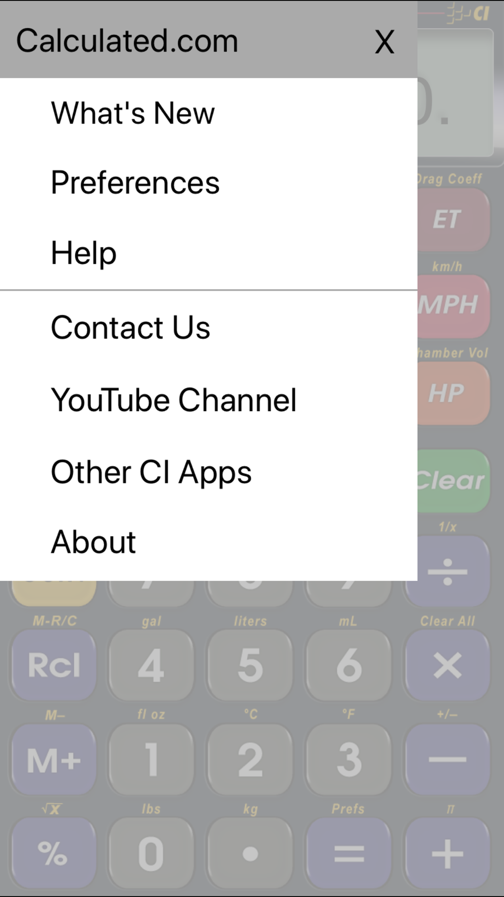 • Calculate Engine Displacement in cubic inches, liters or cc’s