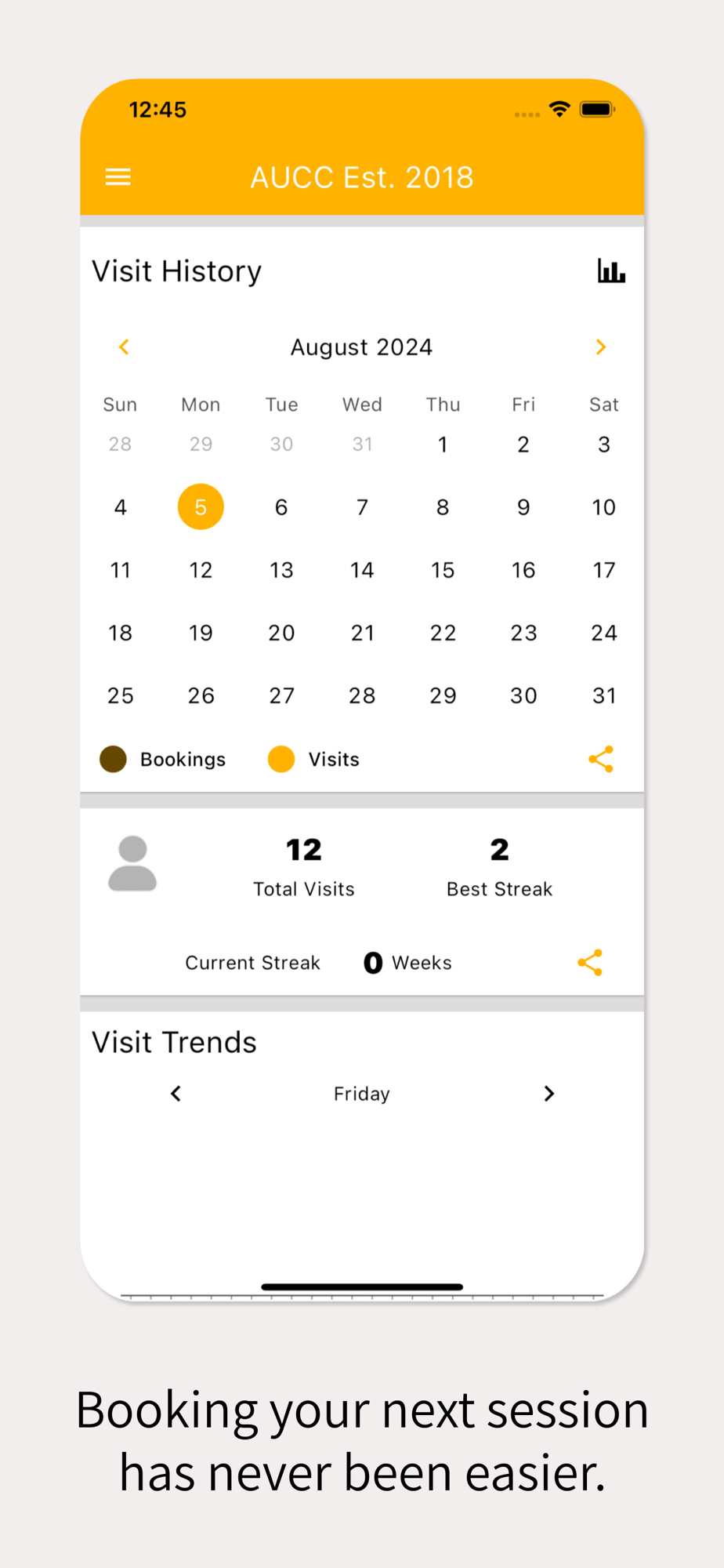 Now it's easier than ever to plan your sessions alongside your schedule. Book classes & sessions on the go, keep your profile up to date and manage your memberships all within the app.
